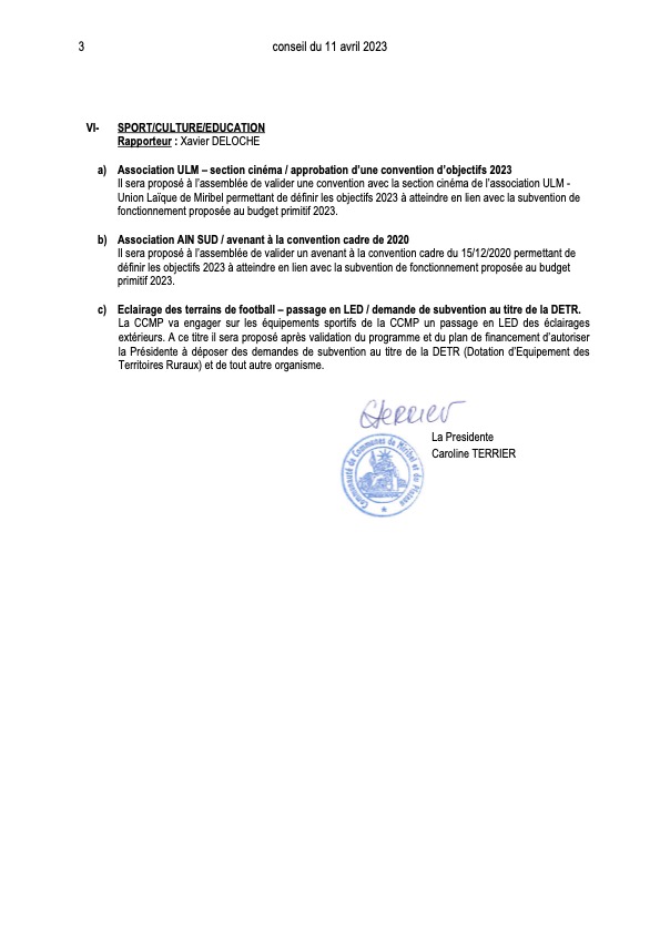 – Association ULM – section cinéma / approbation d’une convention d’objectifs 2023