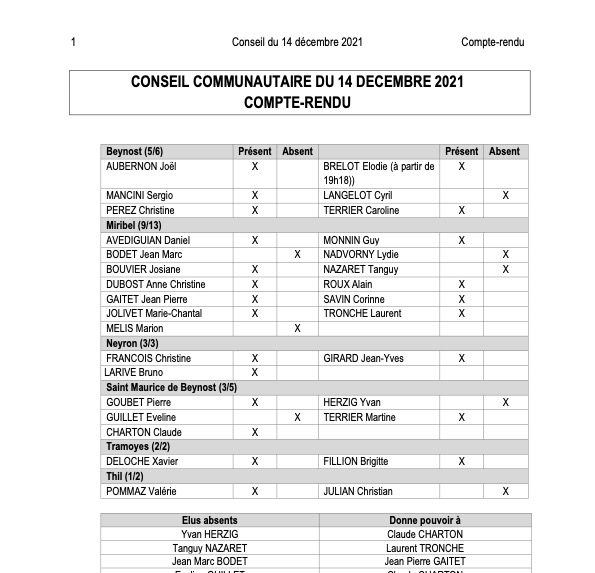 Compte-rendu conseil communautaire du 14 décembre 2021 en présence des élus du territoire de la Communauté de Communes de Miribel et du Plateau.