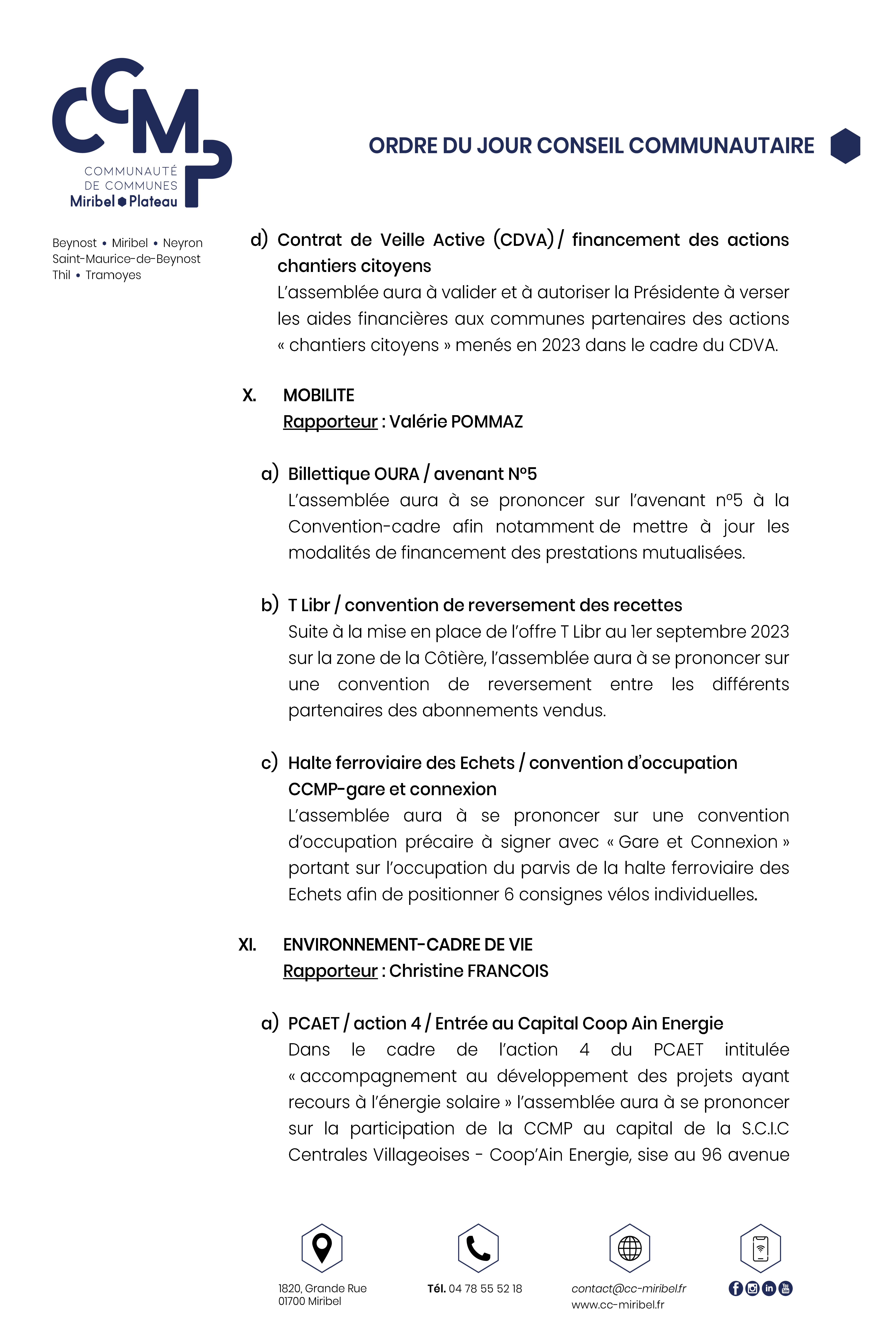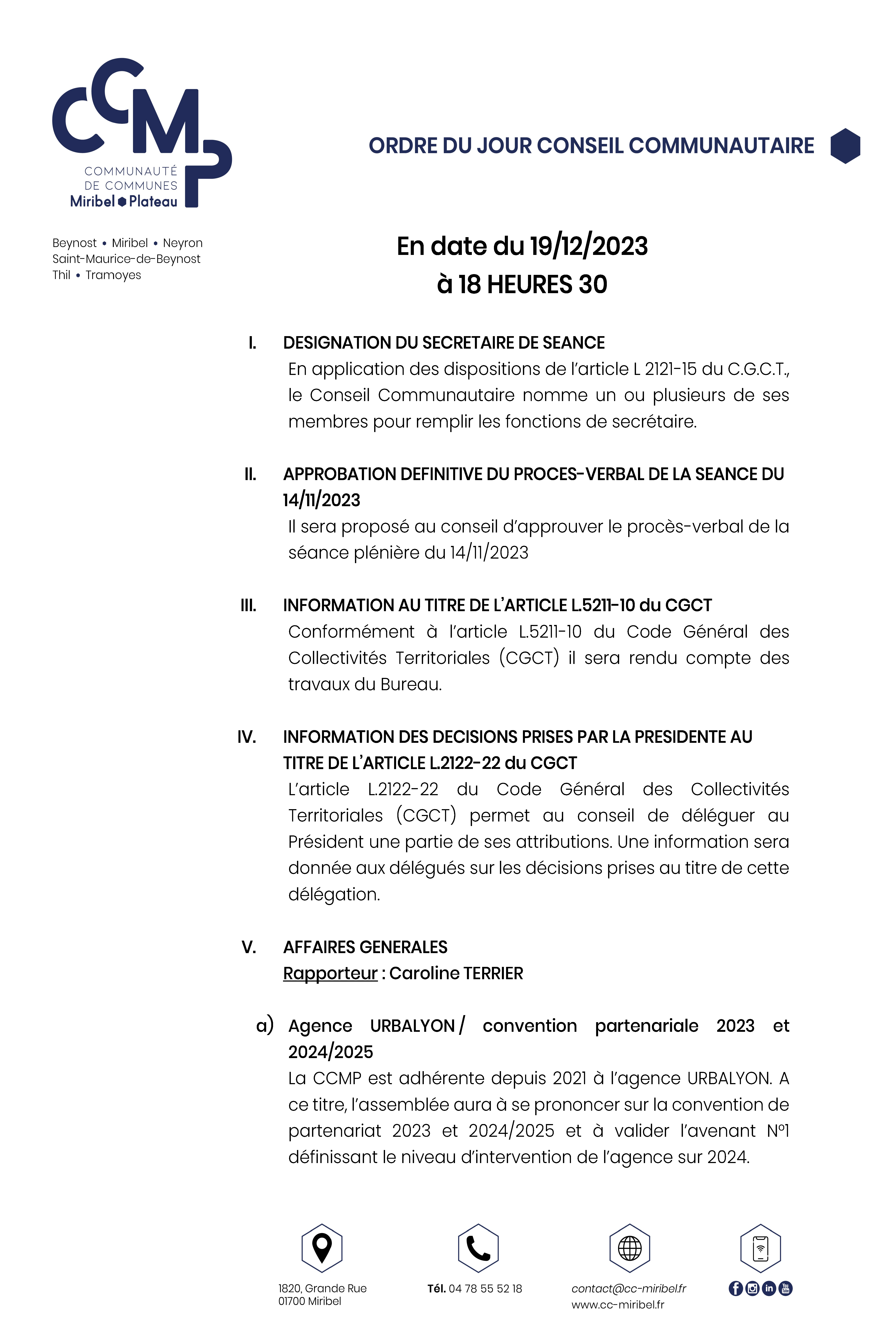 Le Conseil Communautaire de la CCMP se tiendra le mardi 19 décembre 2023 à 18h30, au siège de la CCMP.