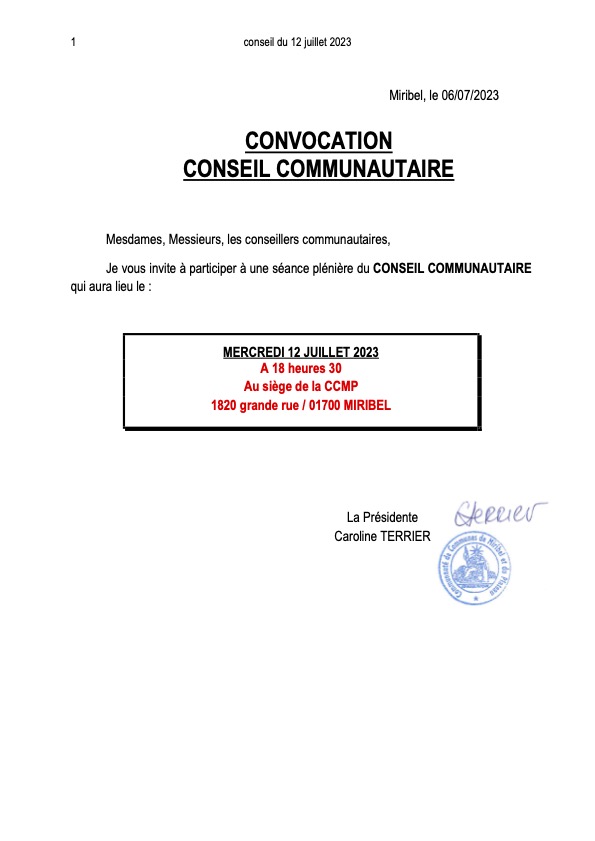 Convocation Conseil Communautaire