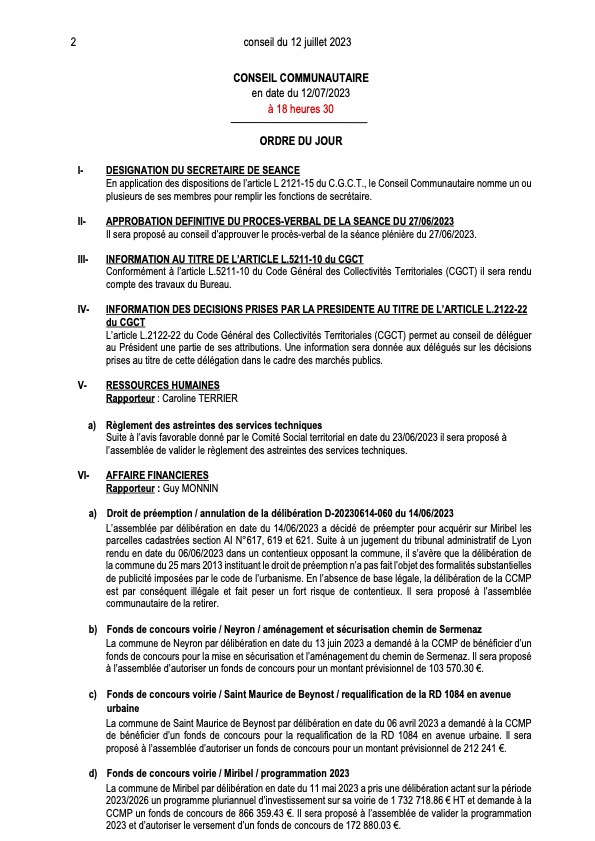 Ordre du jour du Conseil Communautaire :