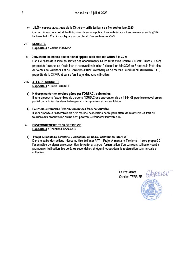 Le Conseil Communautaire de la CCMP se tiendra le mercredi 12 juillet 2023 à 18h30, au siège de la CCMP.