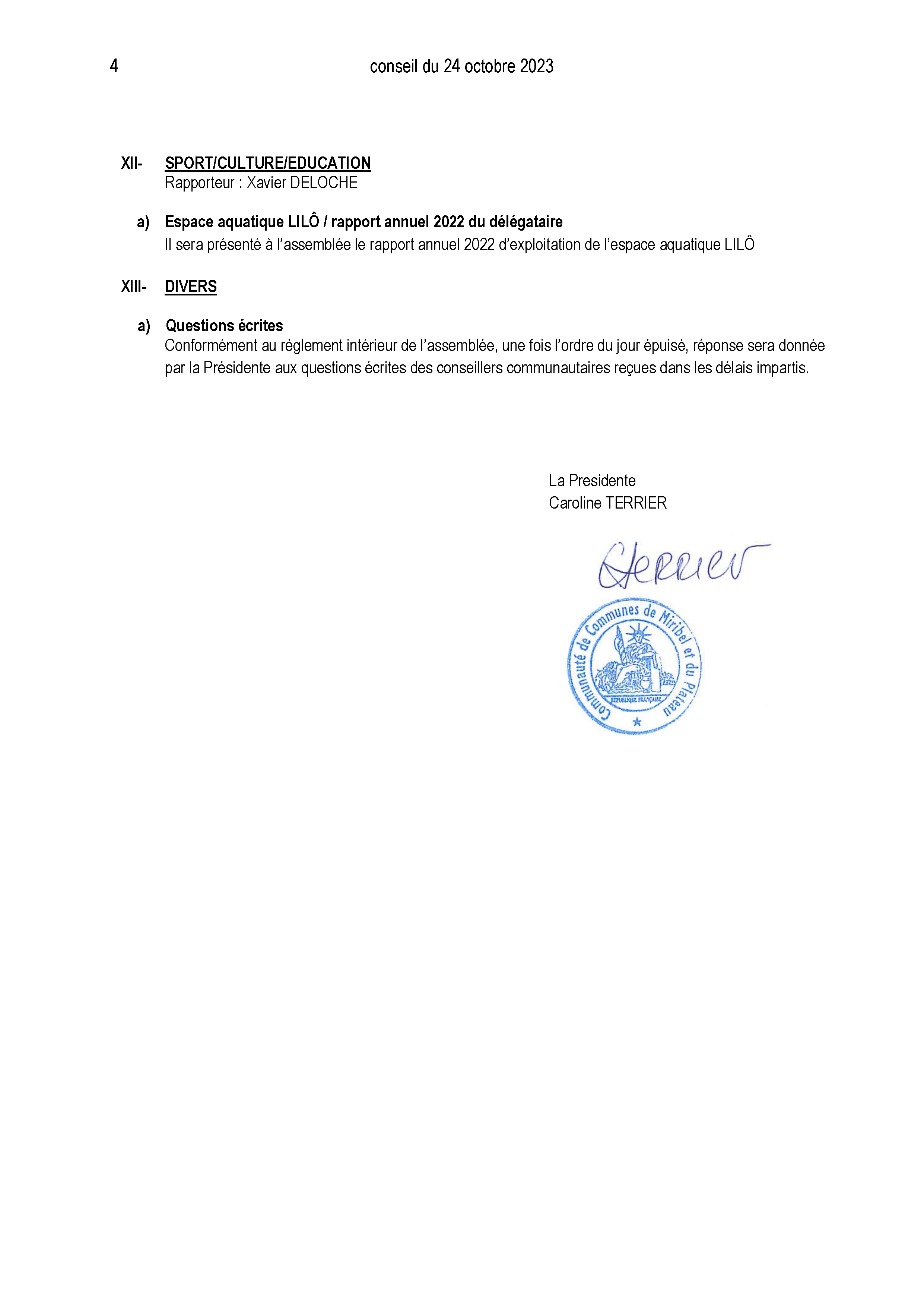 Le Conseil Communautaire de la CCMP se tiendra le mardi 24 octobre 2023 à 18h30, au siège de la CCMP.