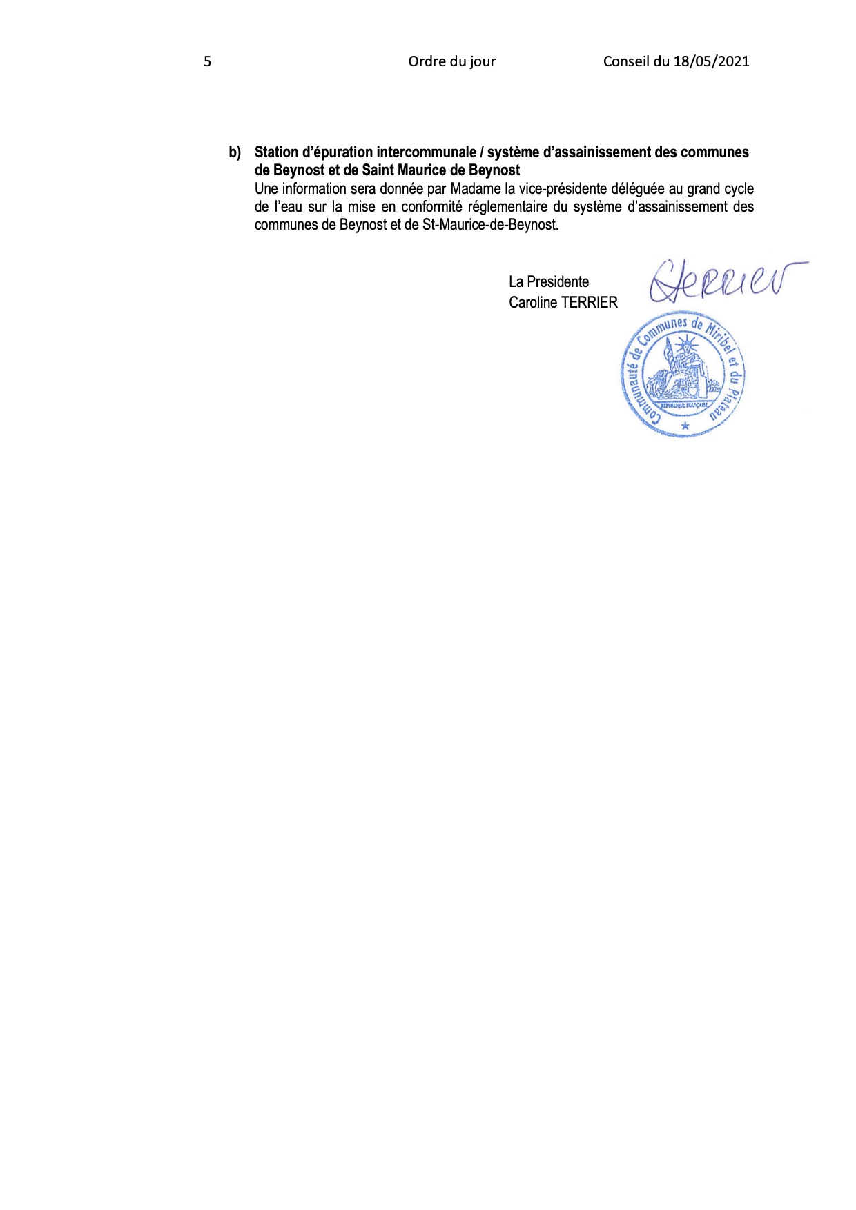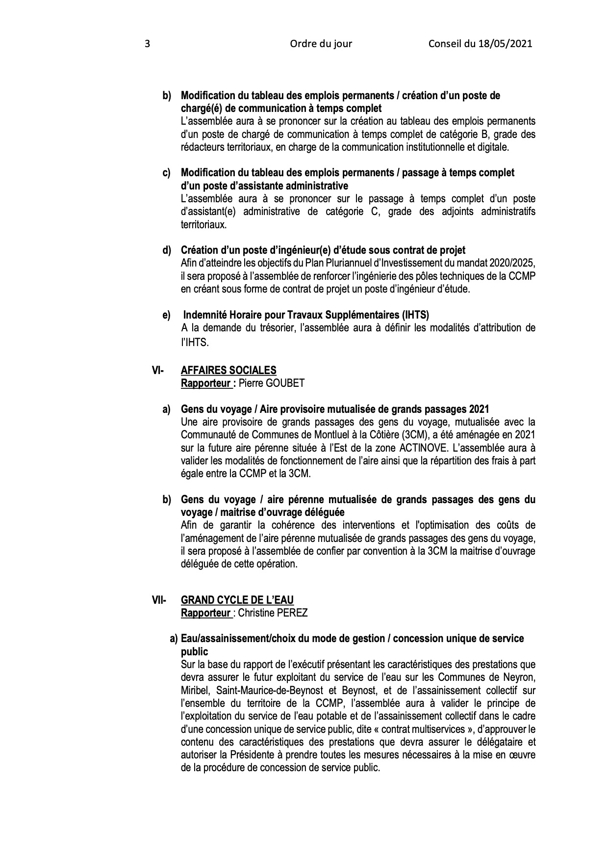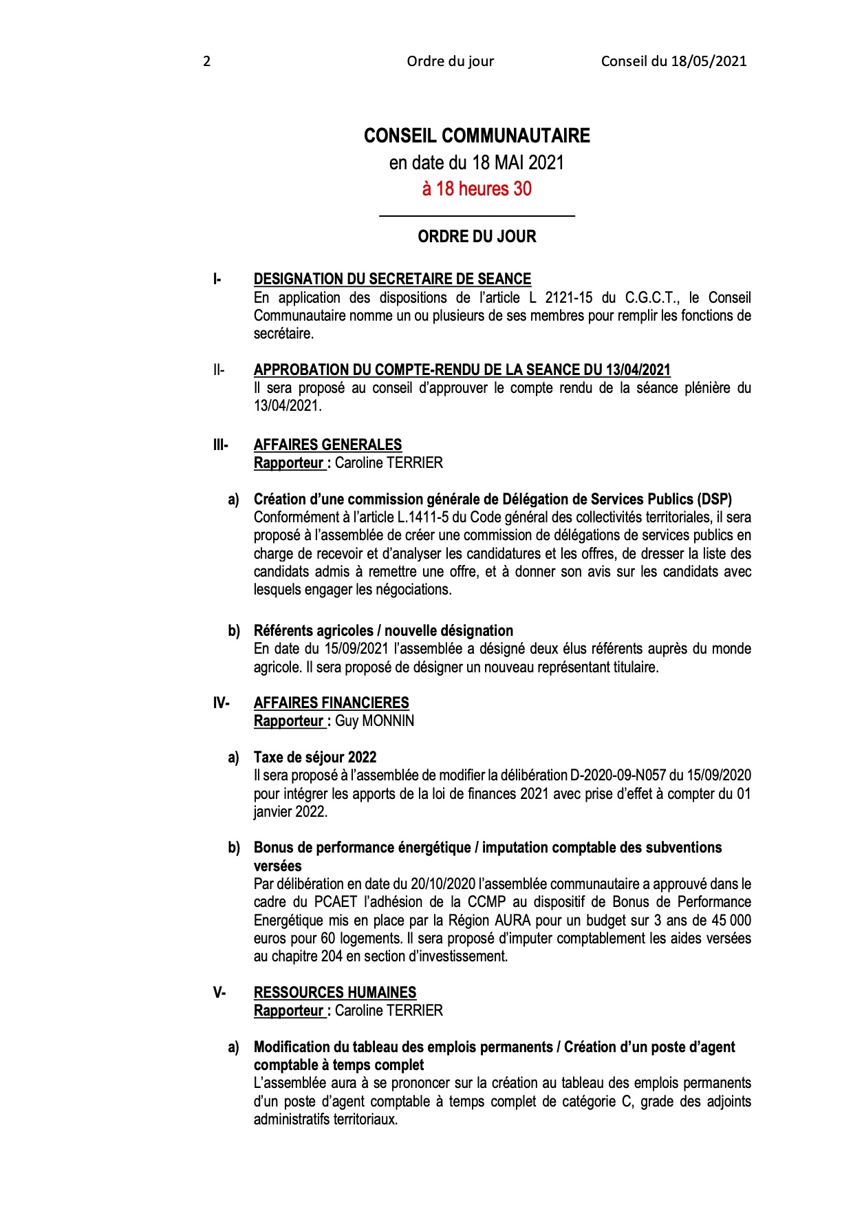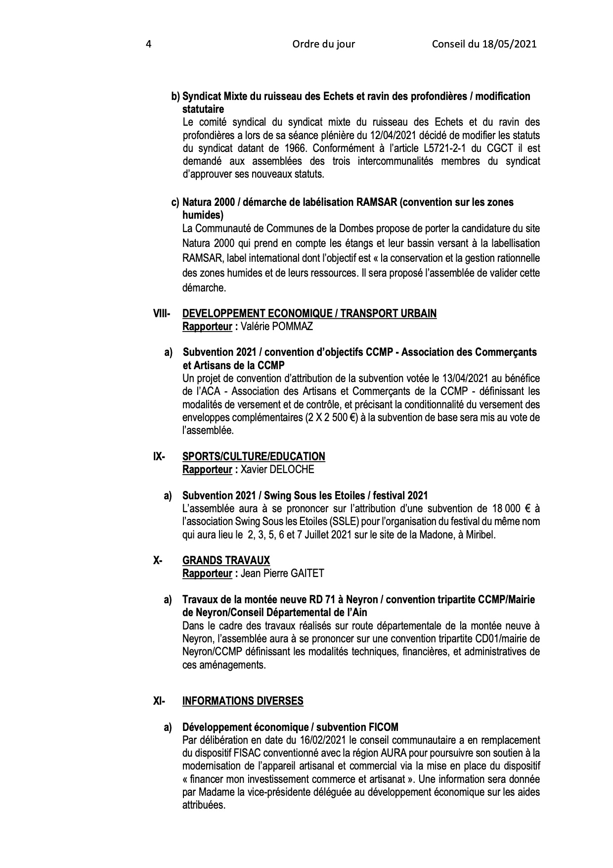 - Ordre du jour du Conseil Communautaire :