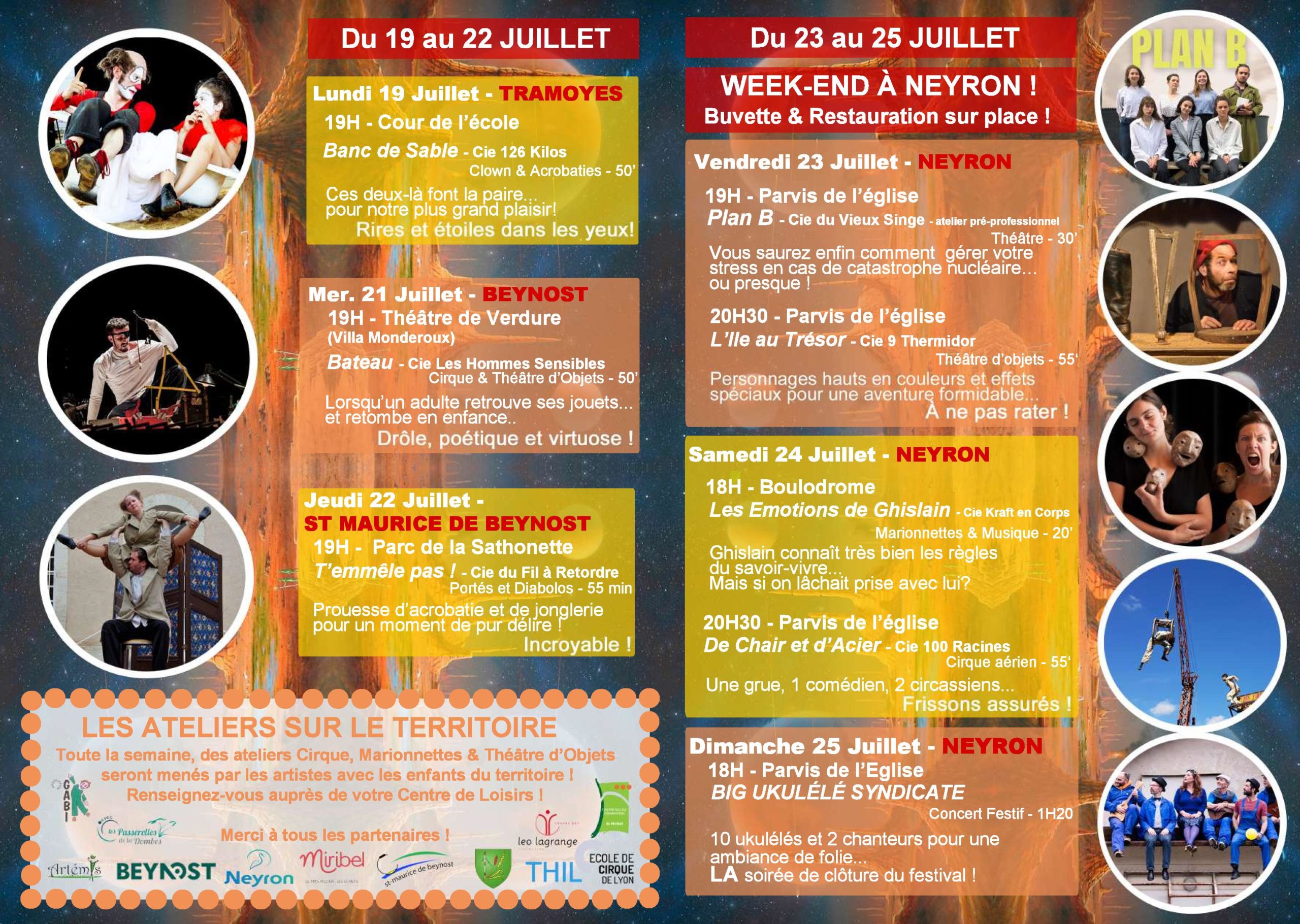 Rendez-vous à 19h dans la cour de l’école pour découvrir « Banc de sable », un spectacle de clown et d’acrobaties.
