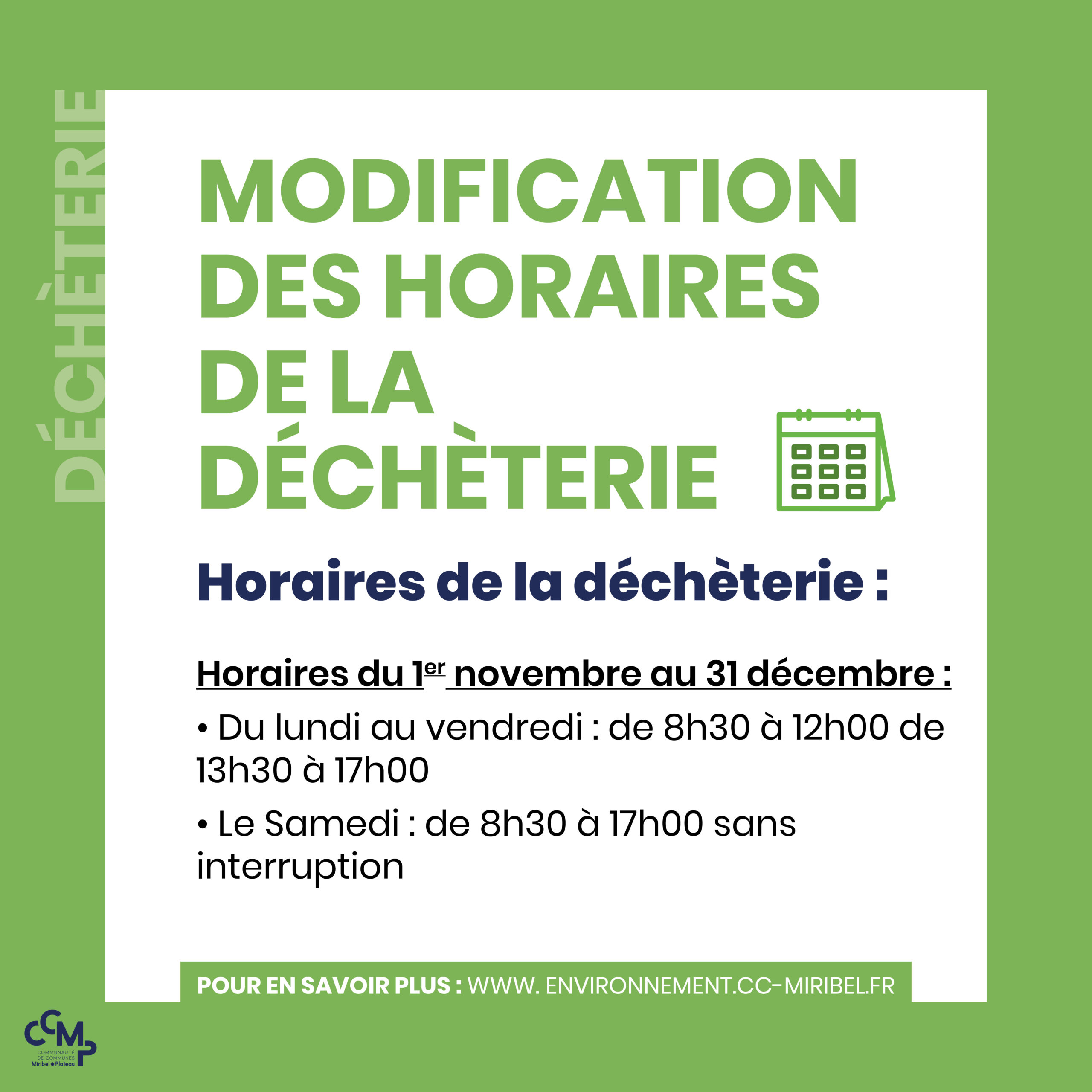 Horaires de la déchèterie