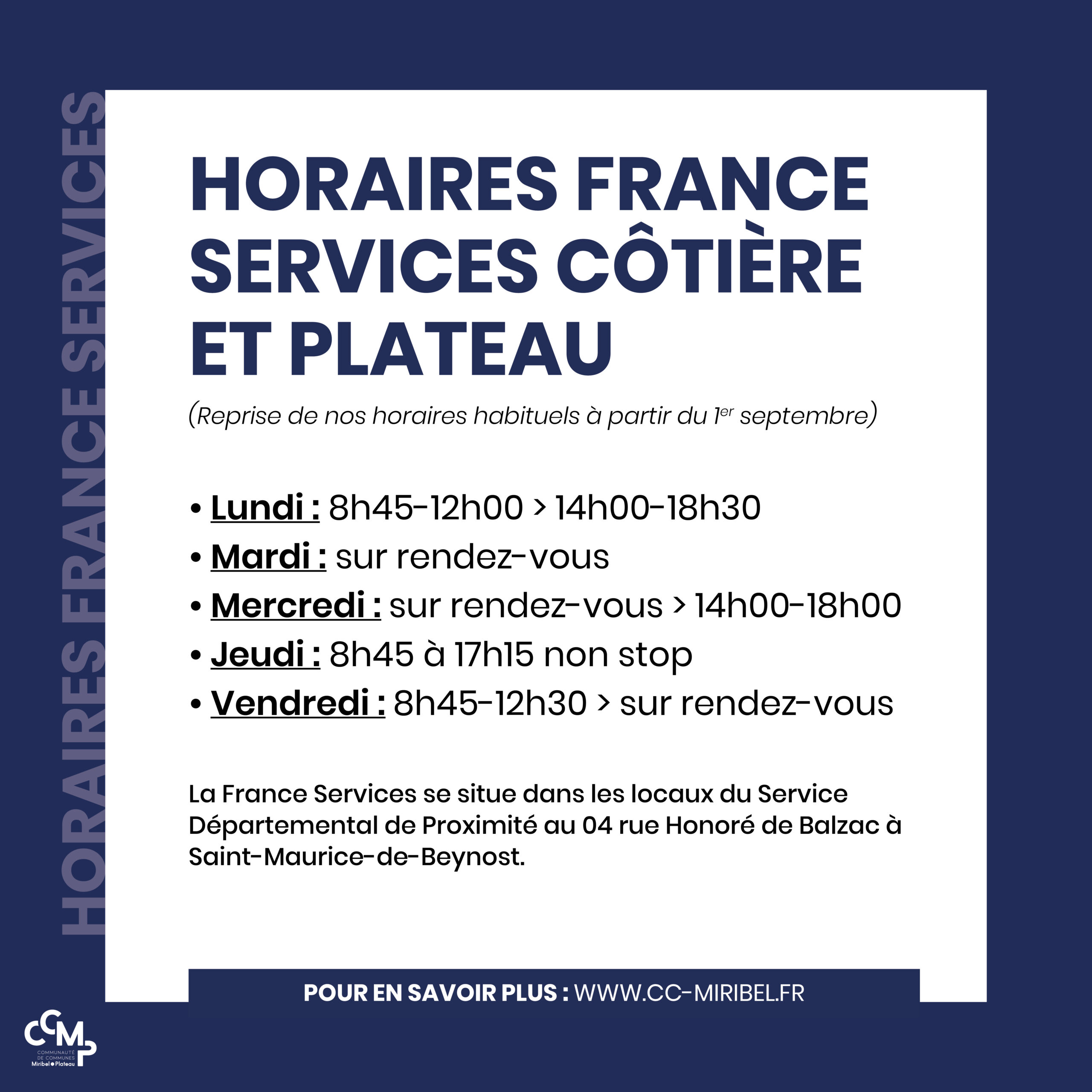 Reprise des horaires habituels de la France Service à partir du 1er septembre