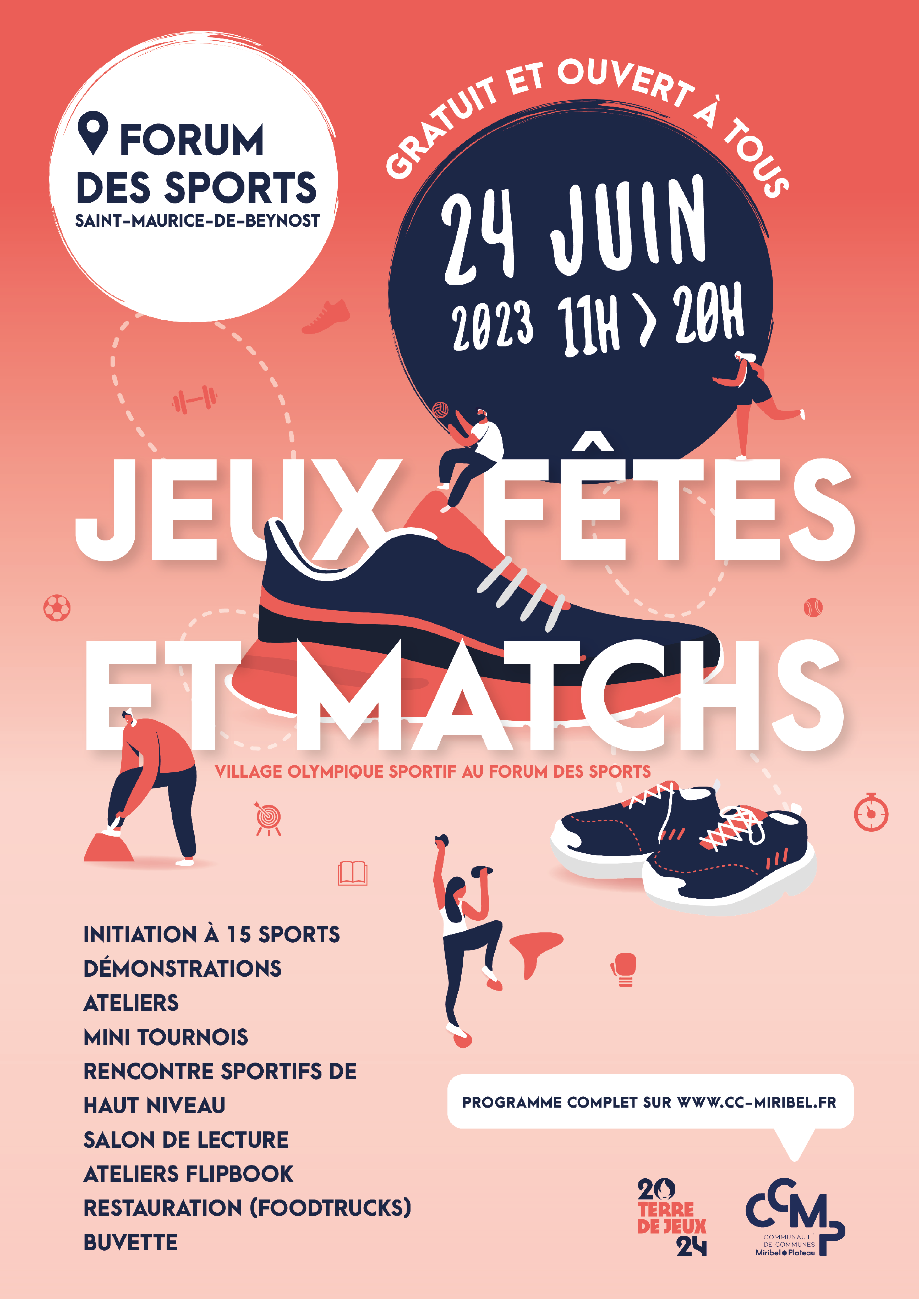 Samedi 24 juin 2023, La Communauté de Communes de Miribel et du Plateau organise un évènement dans le cadre de « Terre de jeux ». Gratuit, familial et ouvert à tous, celui-ci se déroulera au Forum des Sports à Saint-Maurice-de-Beynost de 11h à 20h. Au programme de cette journée « Jeux, Fêtes et Matchs » : initiations, démonstrations et ateliers par quinze associations sportives du territoire.