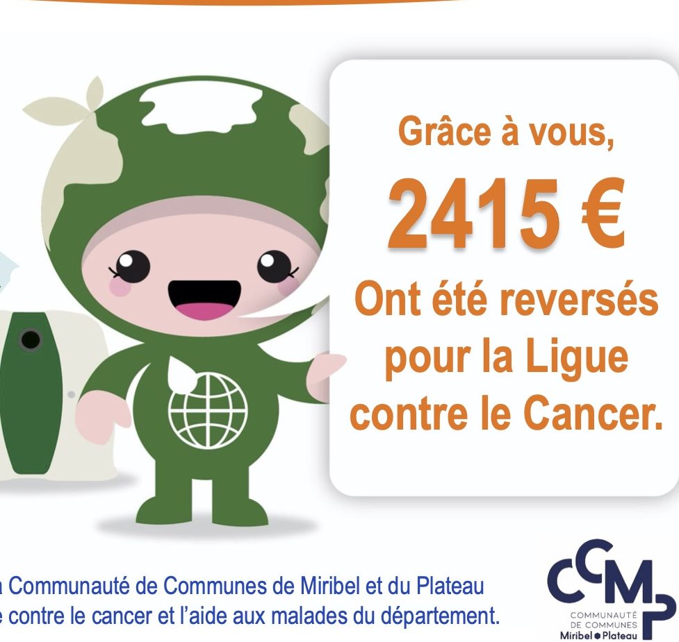 En 2021, 2 415€ ont été reversés pour la Ligue Contre le Cancer ! Pour rappel : 1 tonne collectée = 3 euros reversés