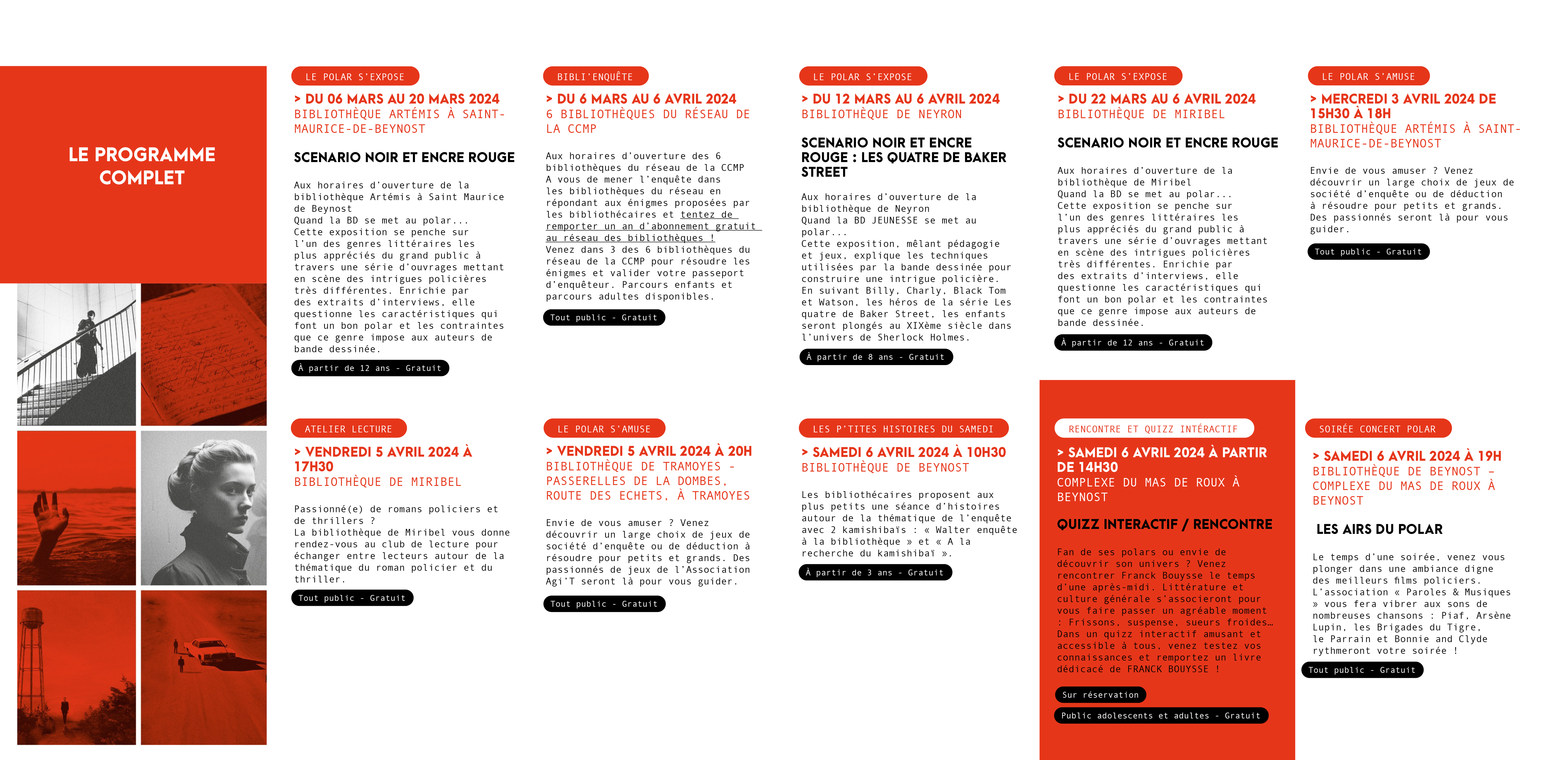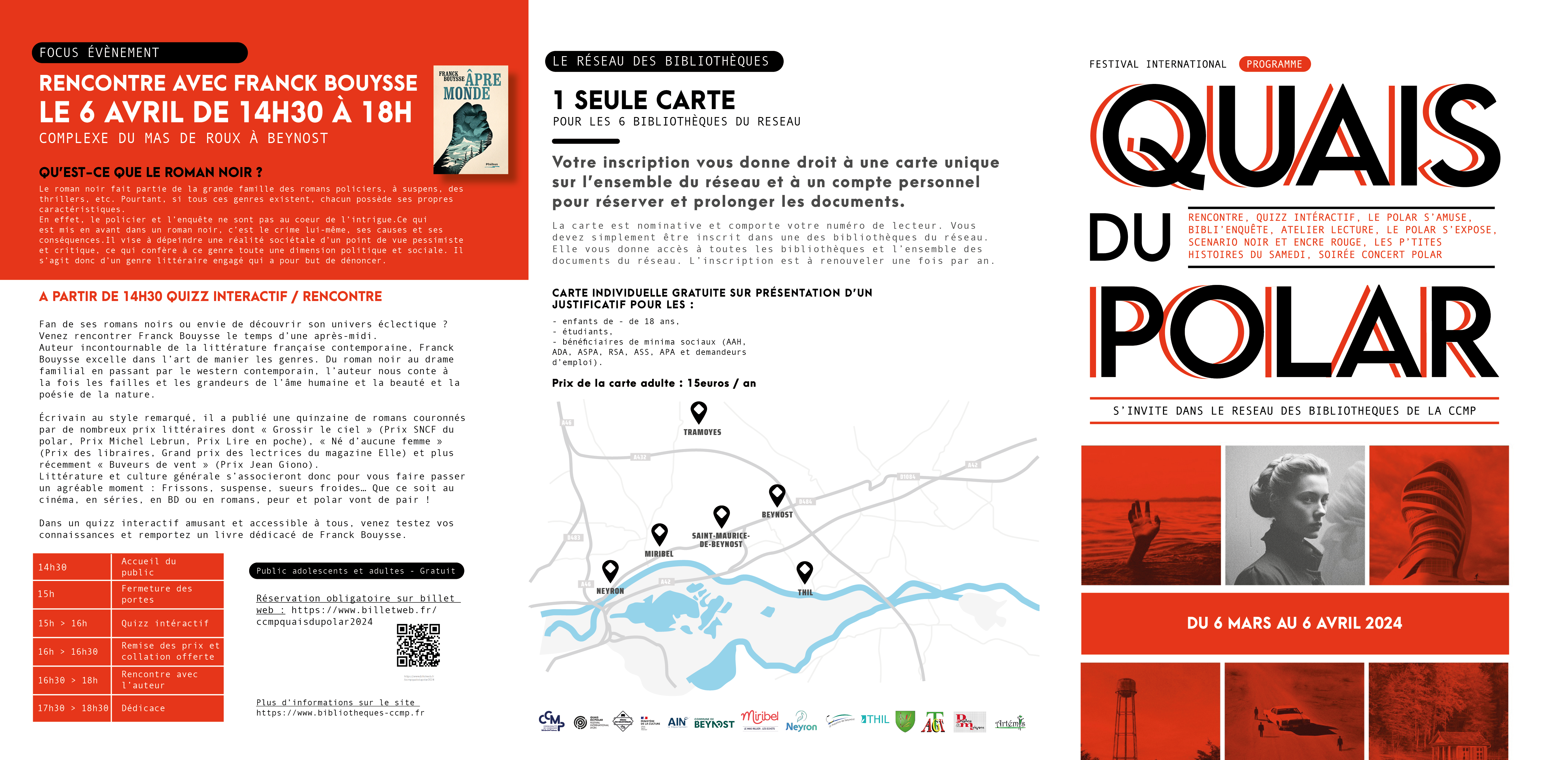 Quais du Polar, festival incontournable du genre polar en France, fait son grand retour sur le territoire de la Communauté de Communes de Miribel et du Plateau. En lien avec le réseau des bibliothèques de nombreuses activités vont se dérouler du 6 mars au 6 avril. Une rencontre avec Franck Bouysse, auteur de roman noir, clôturera l'édition 2024.