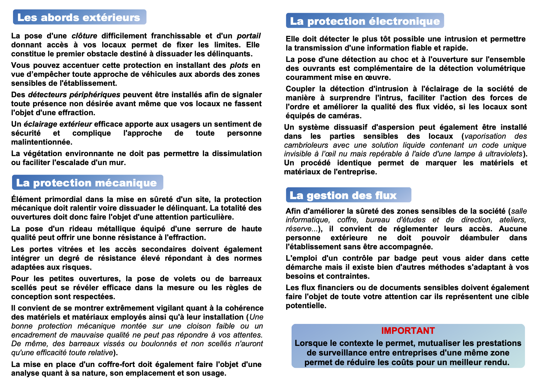 Tranquillité des entreprises