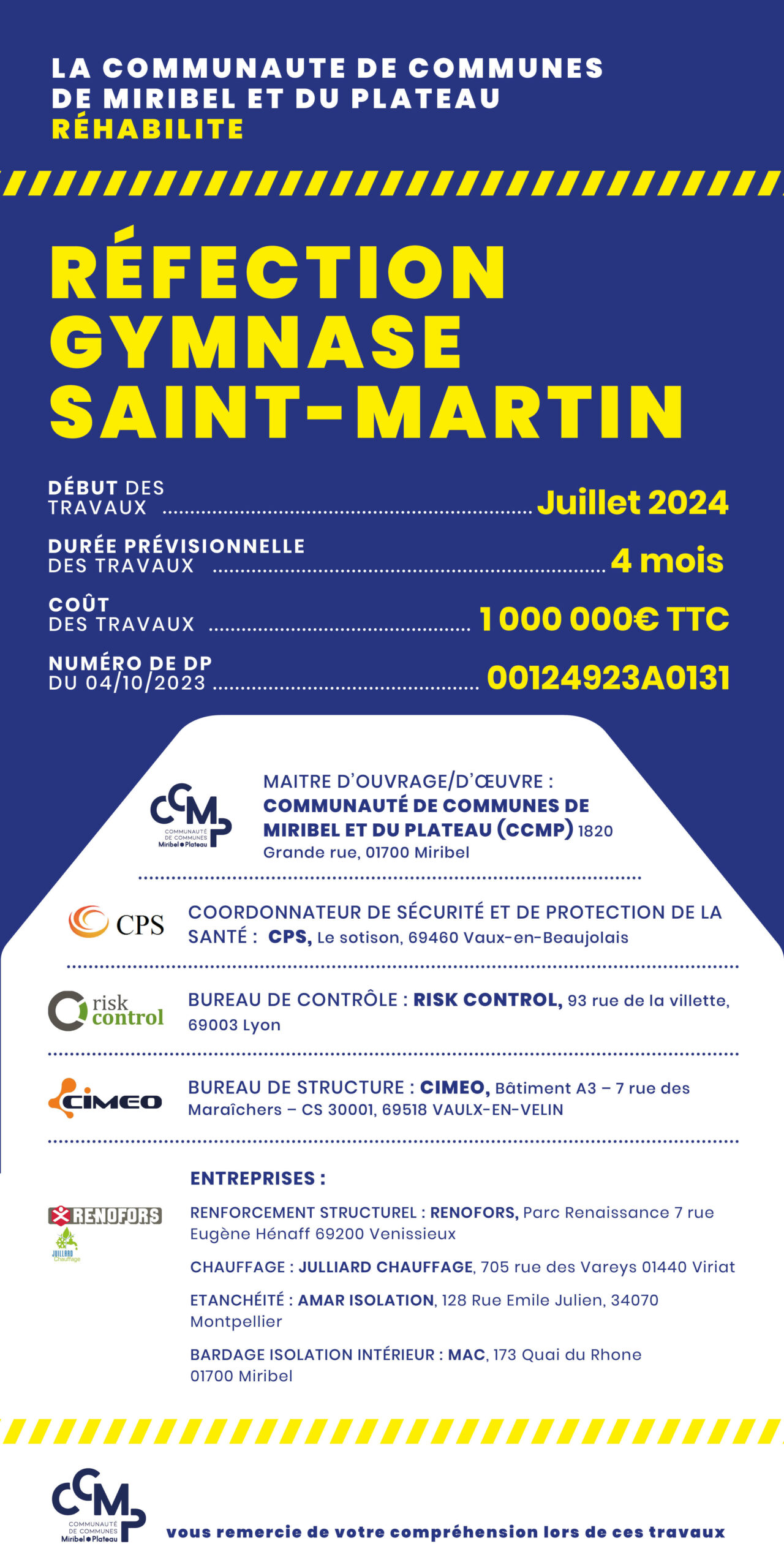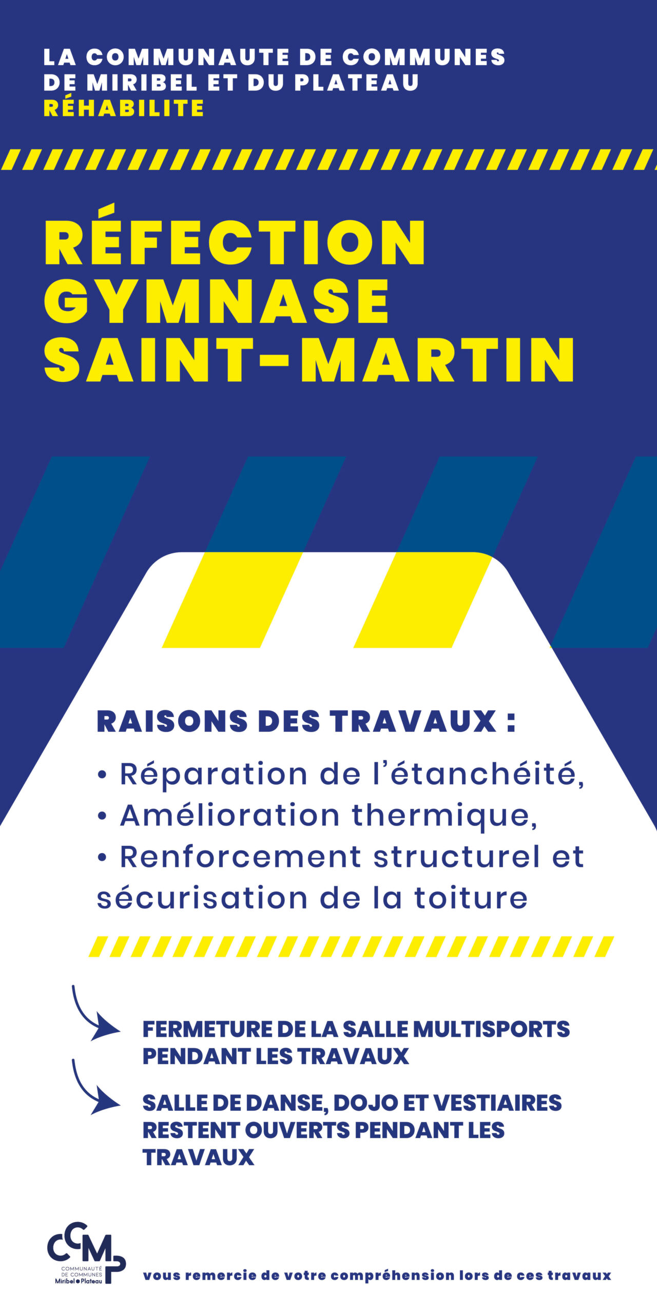 Dés début juillet, des travaux de réfection du Gymnase Saint-Martin à Miribel ont lieu avec pour objectifs :