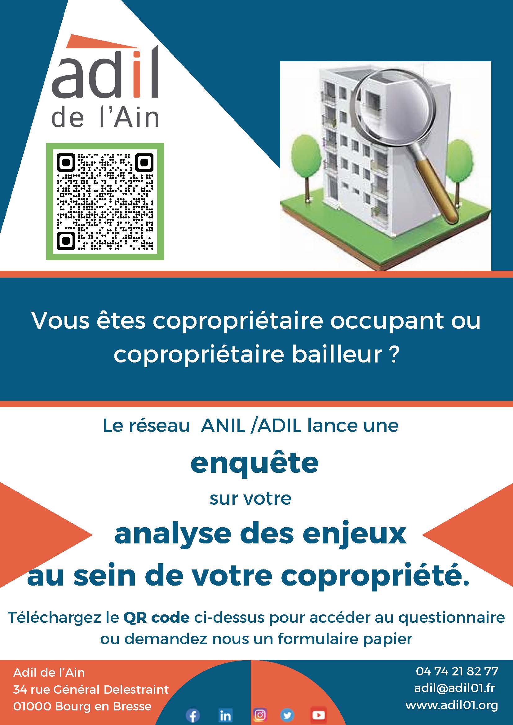L’ADIL de l’Ain s’associe à une enquête du réseau ANIL/ADIL en direction des copropriétaires.