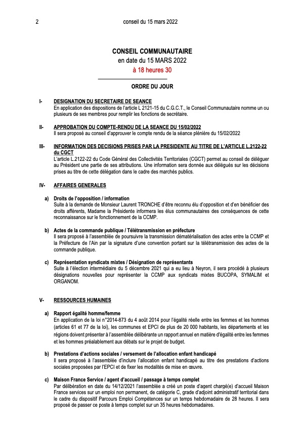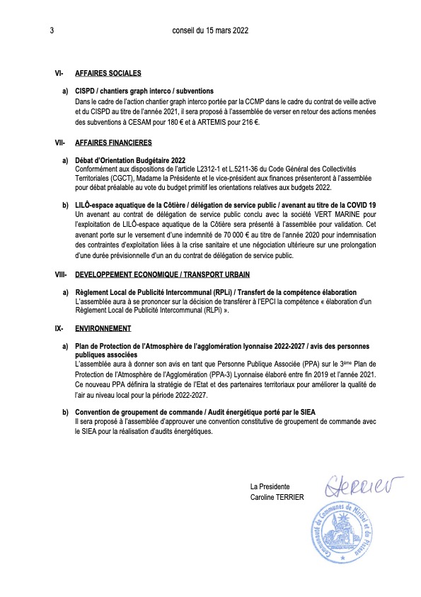 Conseil Communautaire le 15 Mars 2022