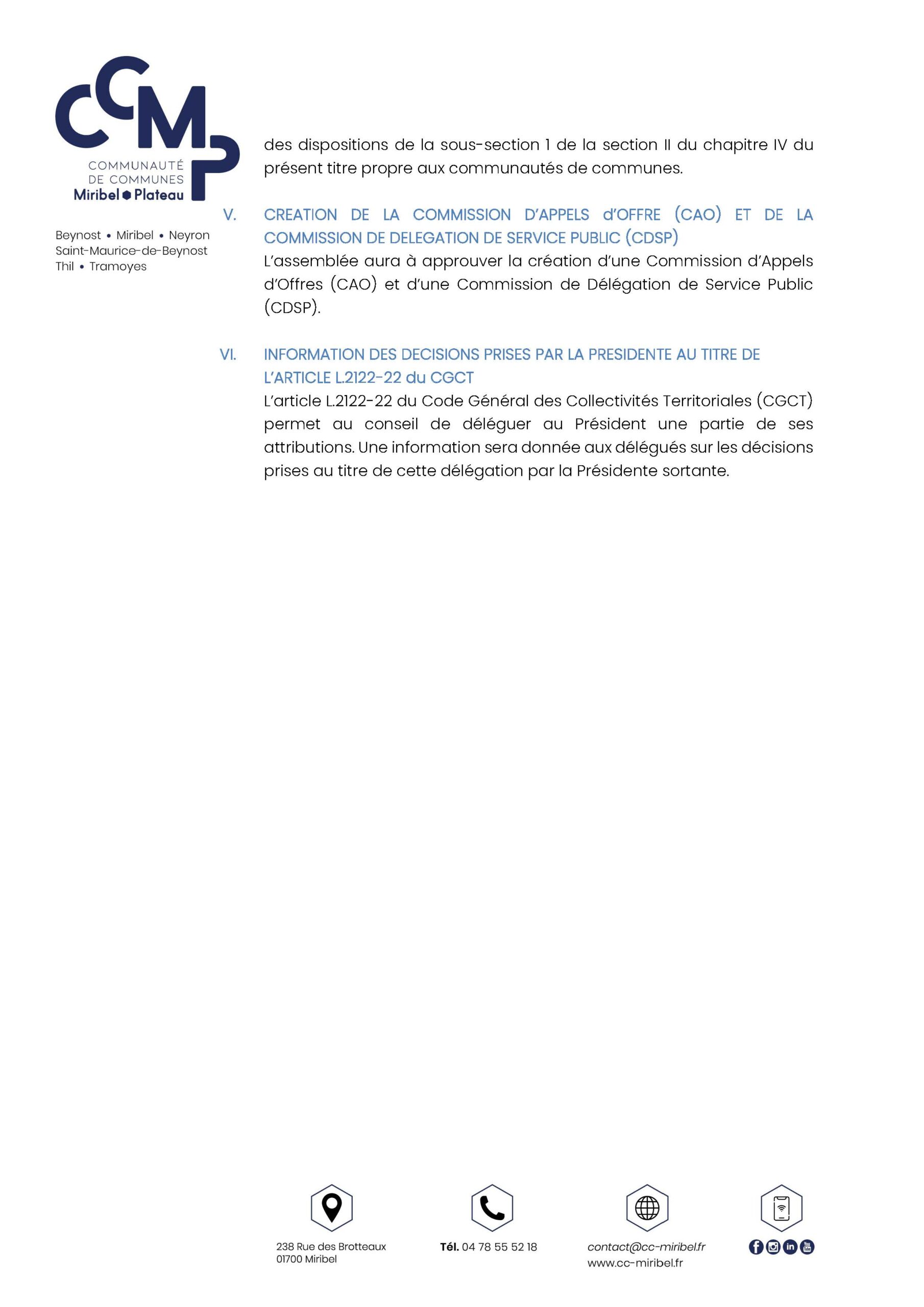 – Création de la commission d’appels d’offre (CAO) et de la commission de déléfation de service public (CDSP)