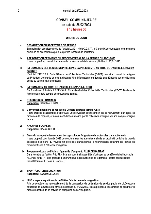 Ordre du jour du Conseil Communautaire :