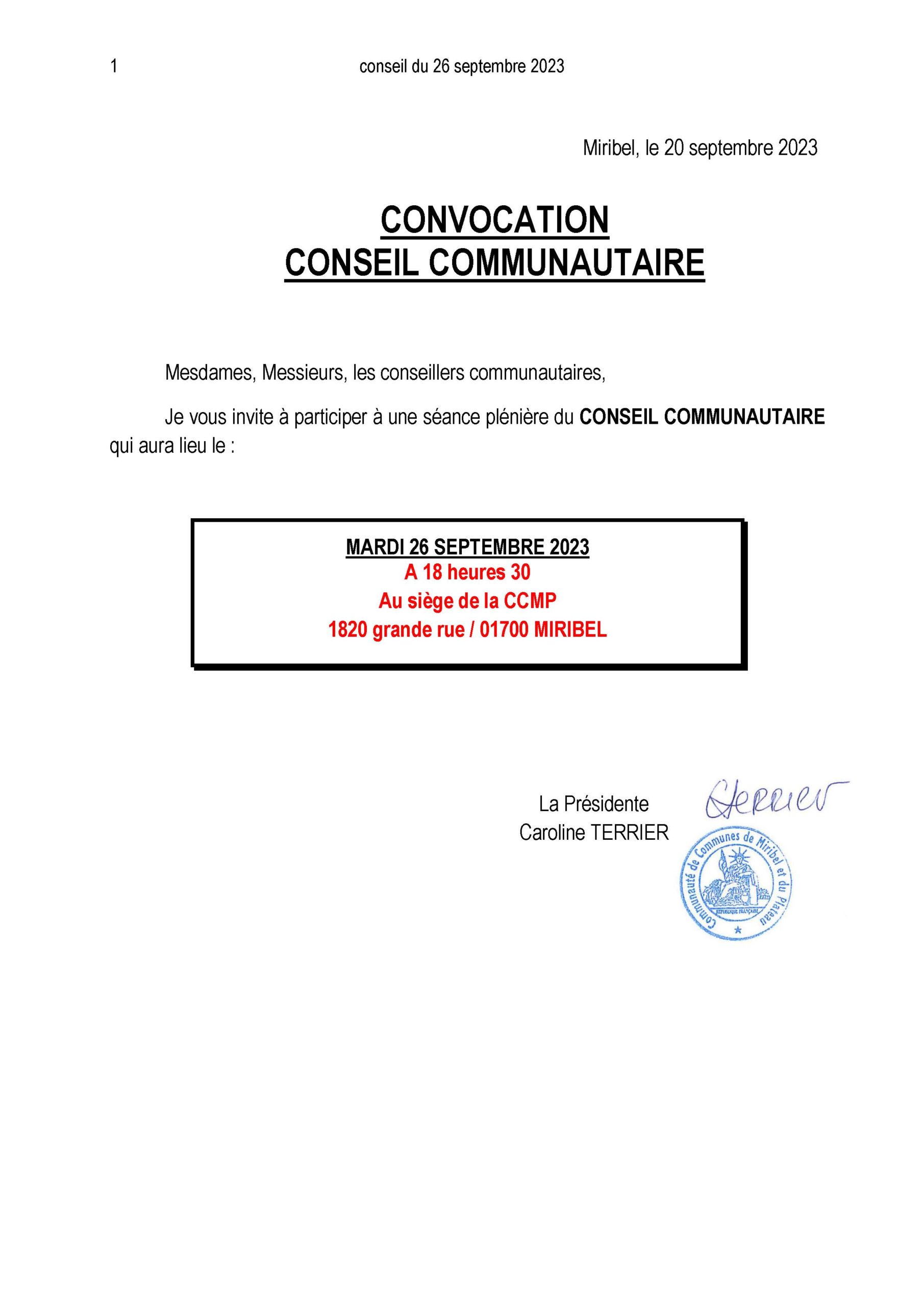 Le Conseil Communautaire de la CCMP se tiendra le mardi 26 septembre 2023 à 18h30, au siège de la CCMP.