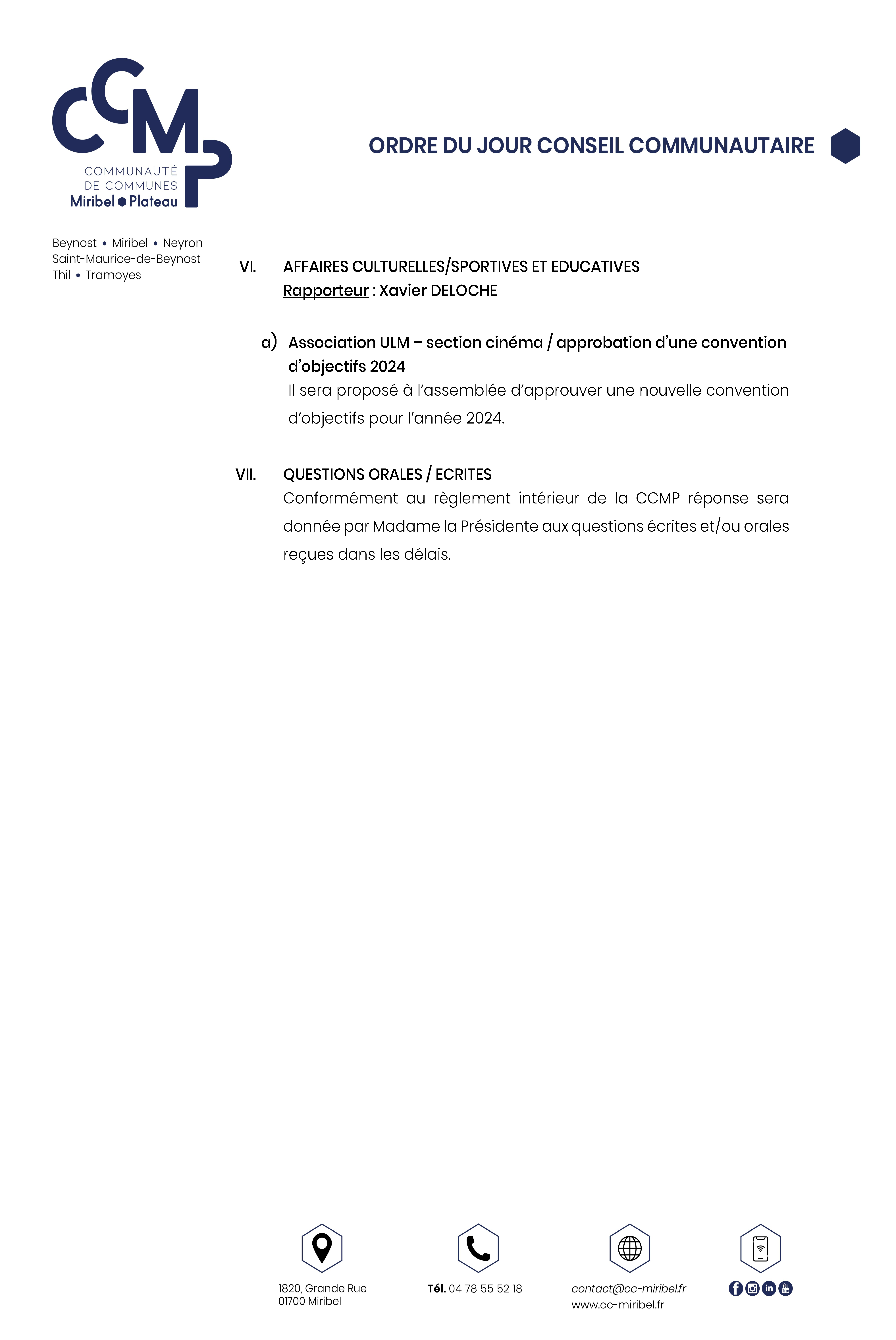 – Association ULM – section cinéma / approbation d’une convention d’objectifs 2024