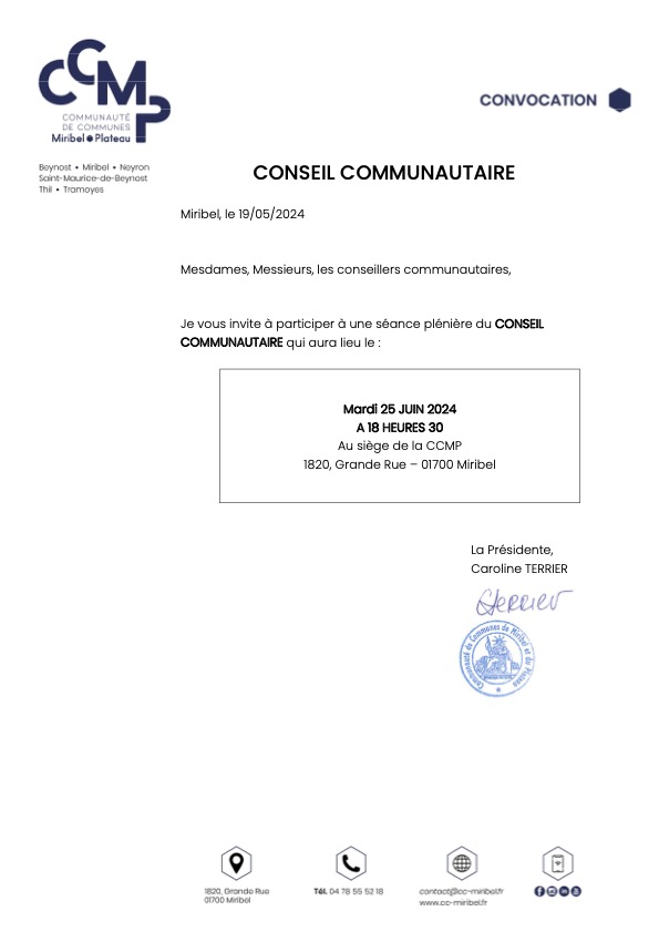 Convocation Conseil Communautaire