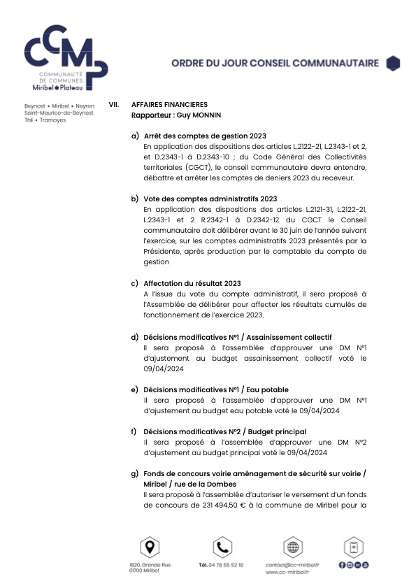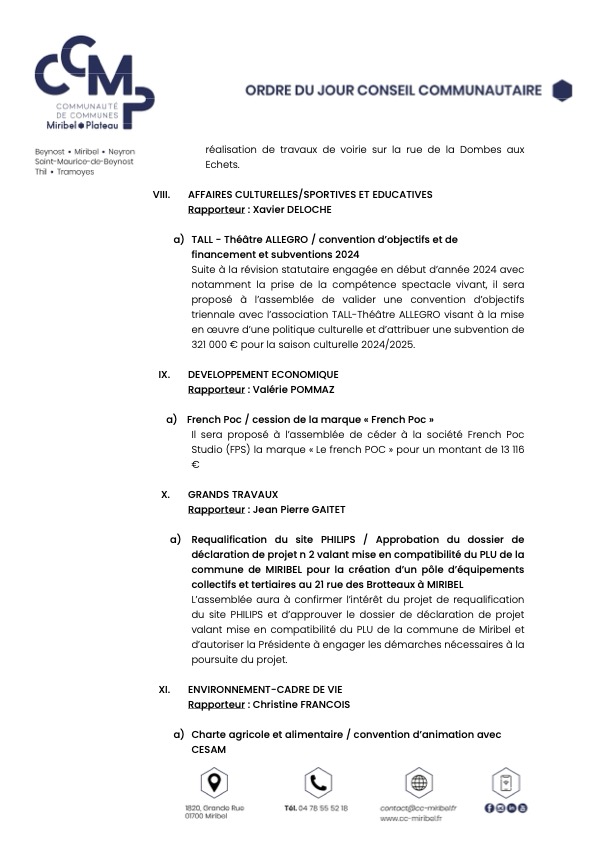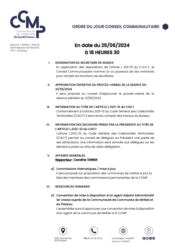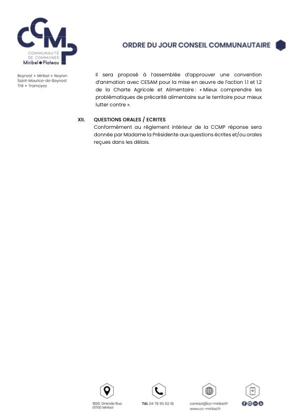 Ordre du jour du Conseil Communautaire :