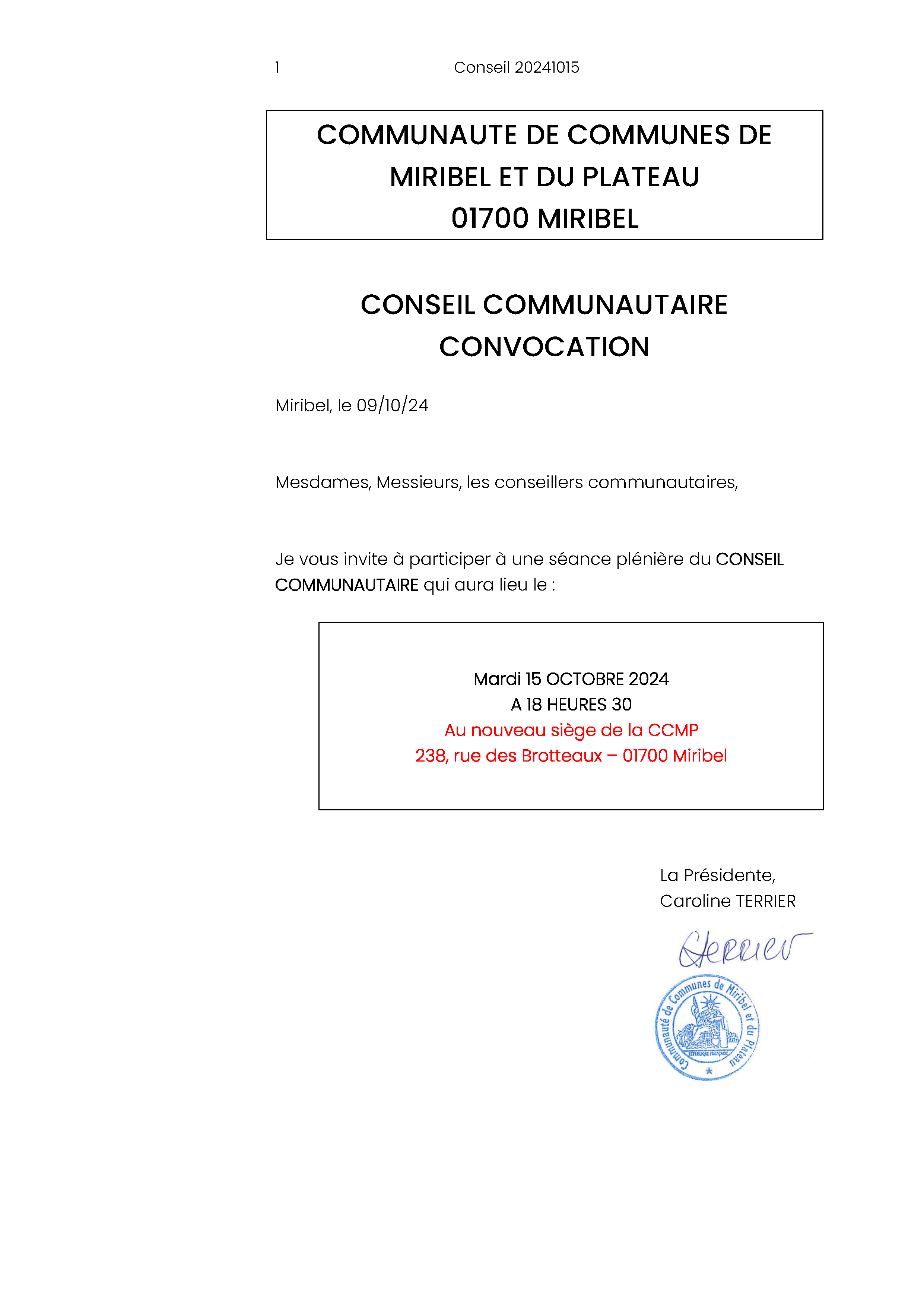 Convocation Conseil Communautaire