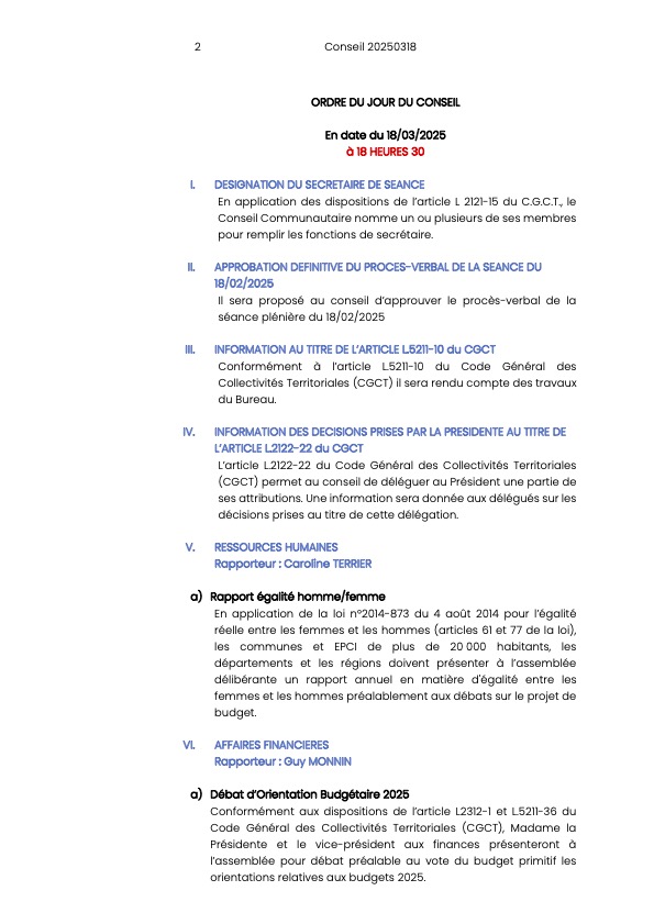 – Débat d’Orientation Budgétaire 2025