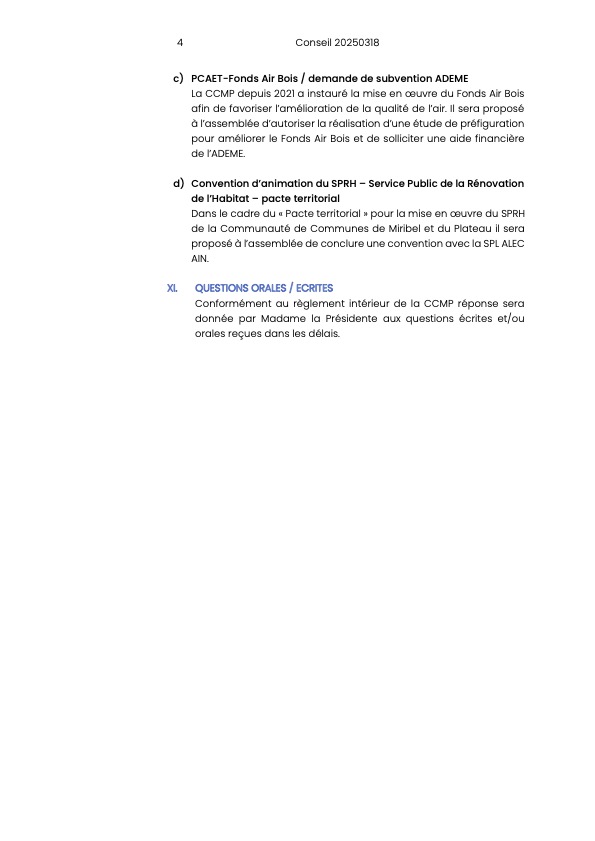 Ordre du jour du Conseil Communautaire :