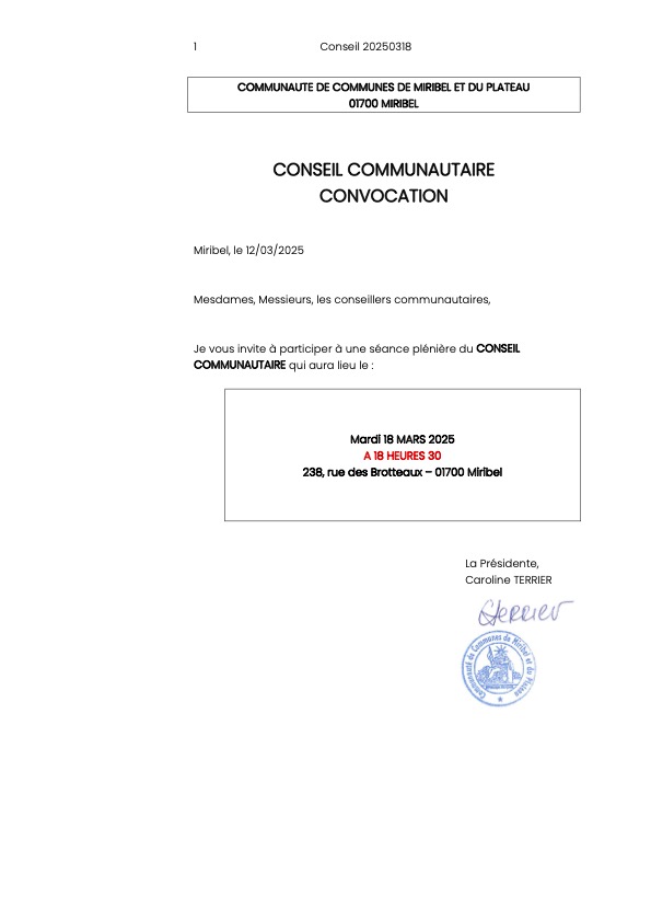 Convocation Conseil Communautaire