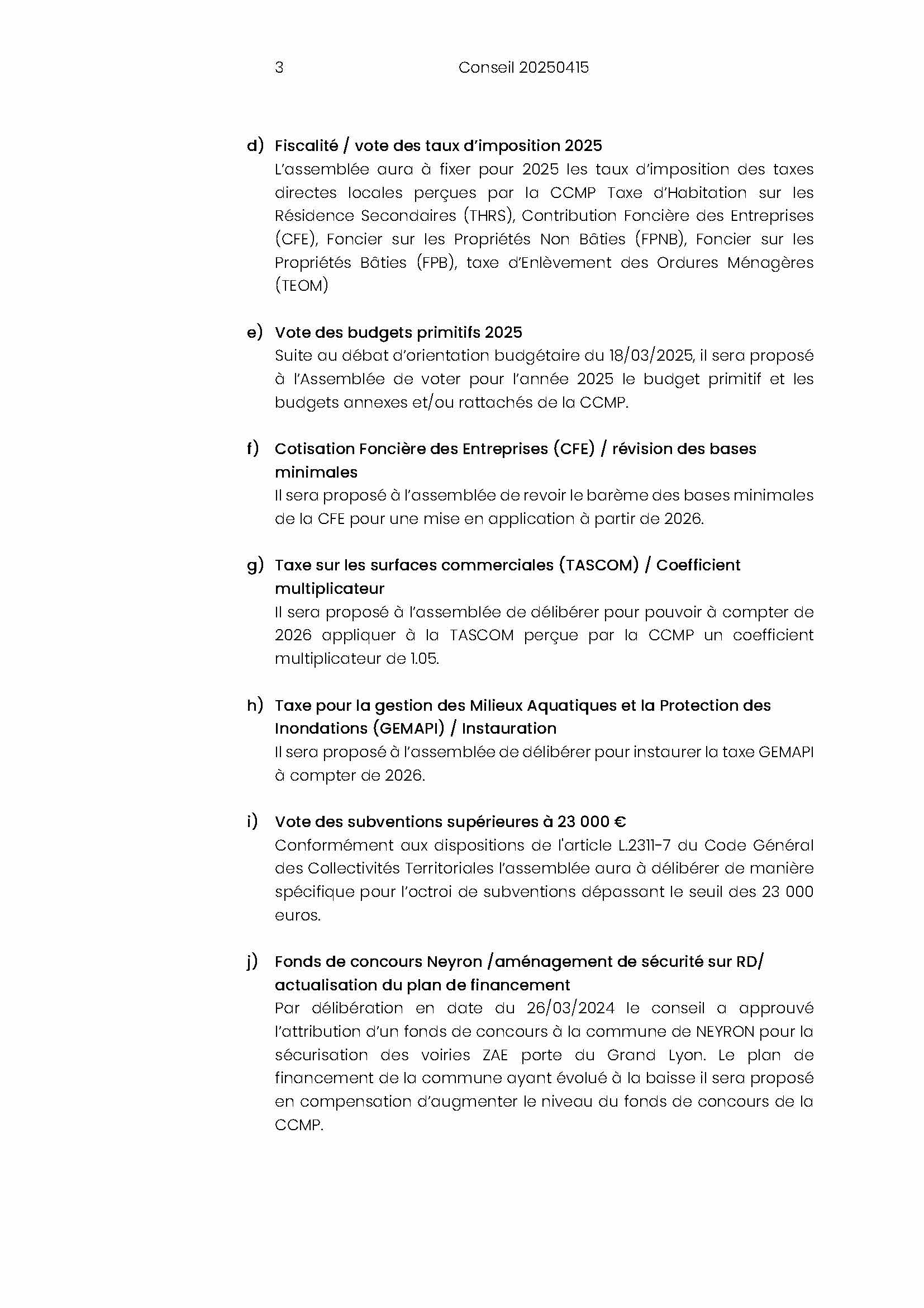 Le Conseil Communautaire de la CCMP se tiendra le mardi 15 avril 2025 à 18h30, au nouveau siège de la CCMP (238 rue des brotteaux, 01700 Miribel)