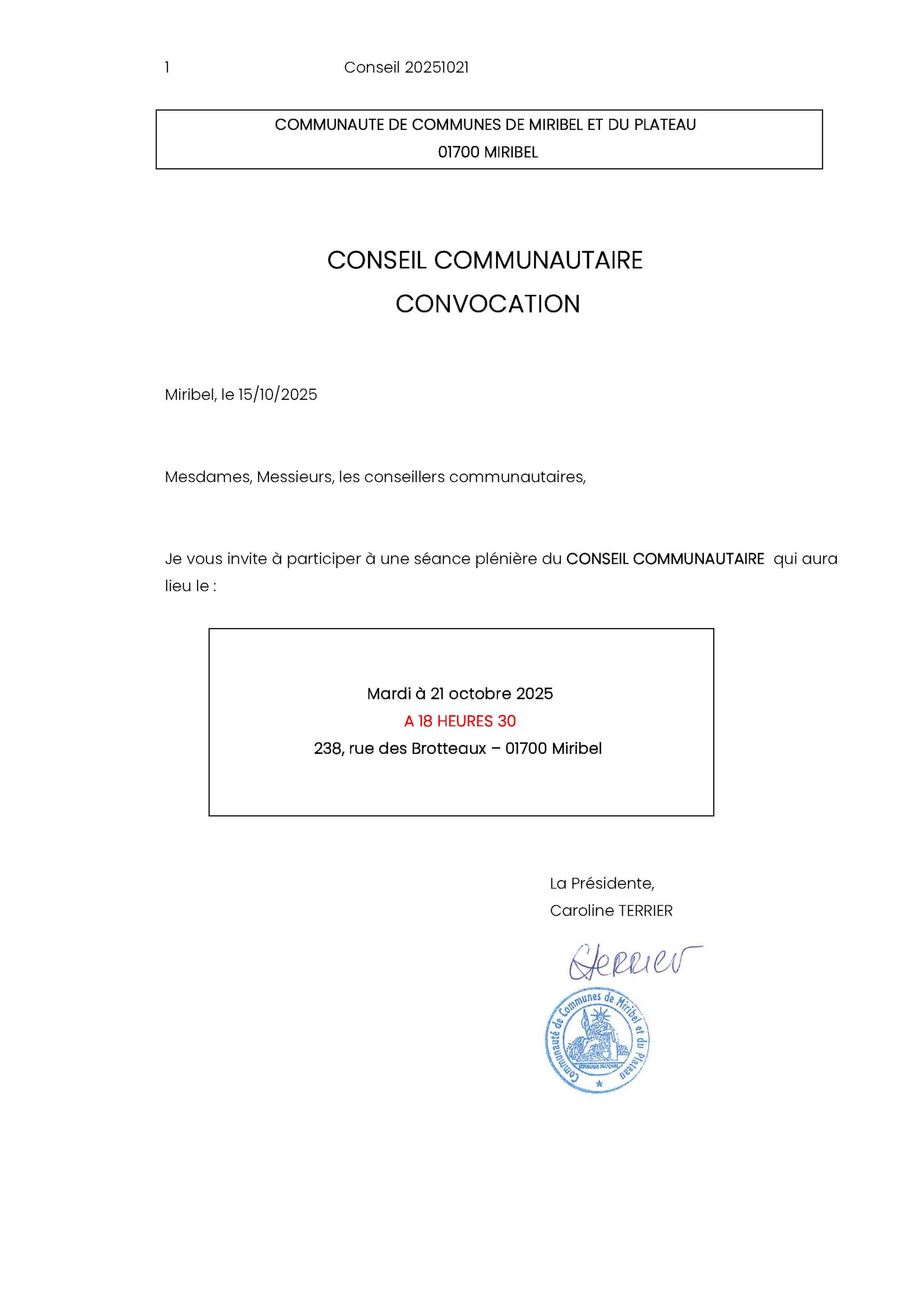 Convocation Conseil Communautaire