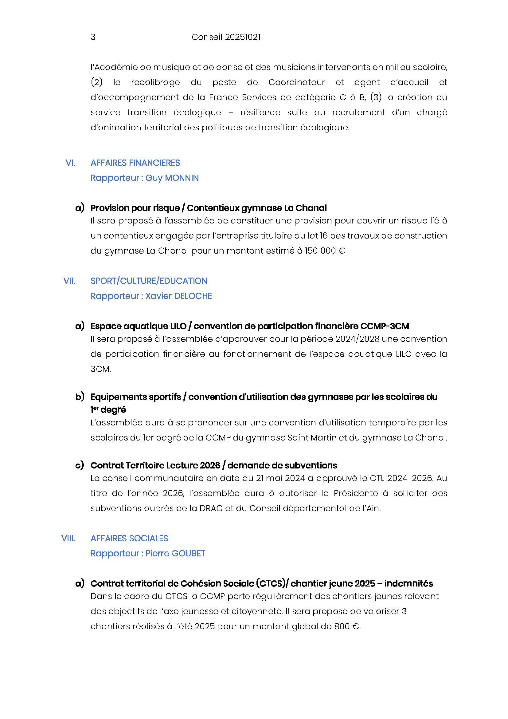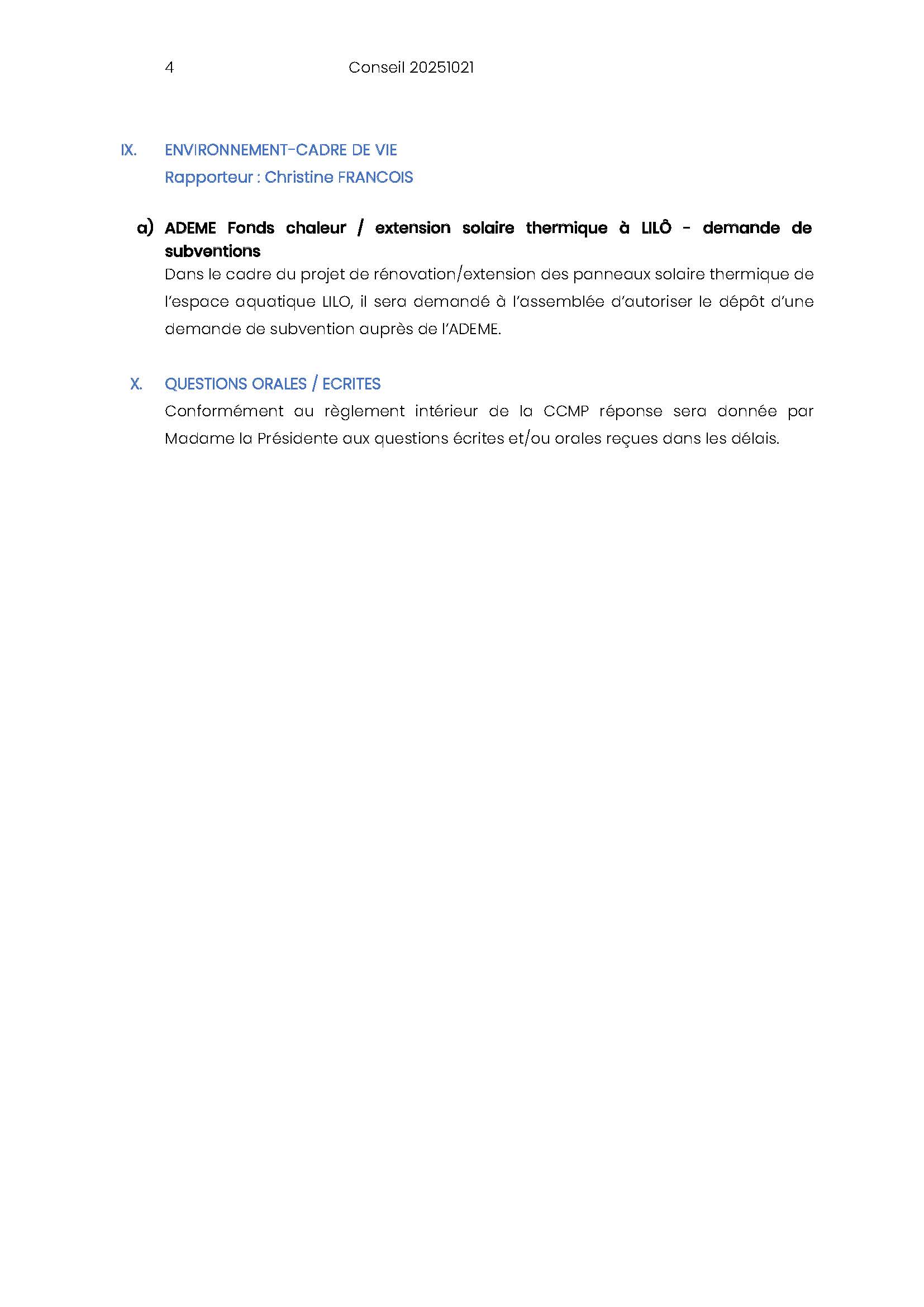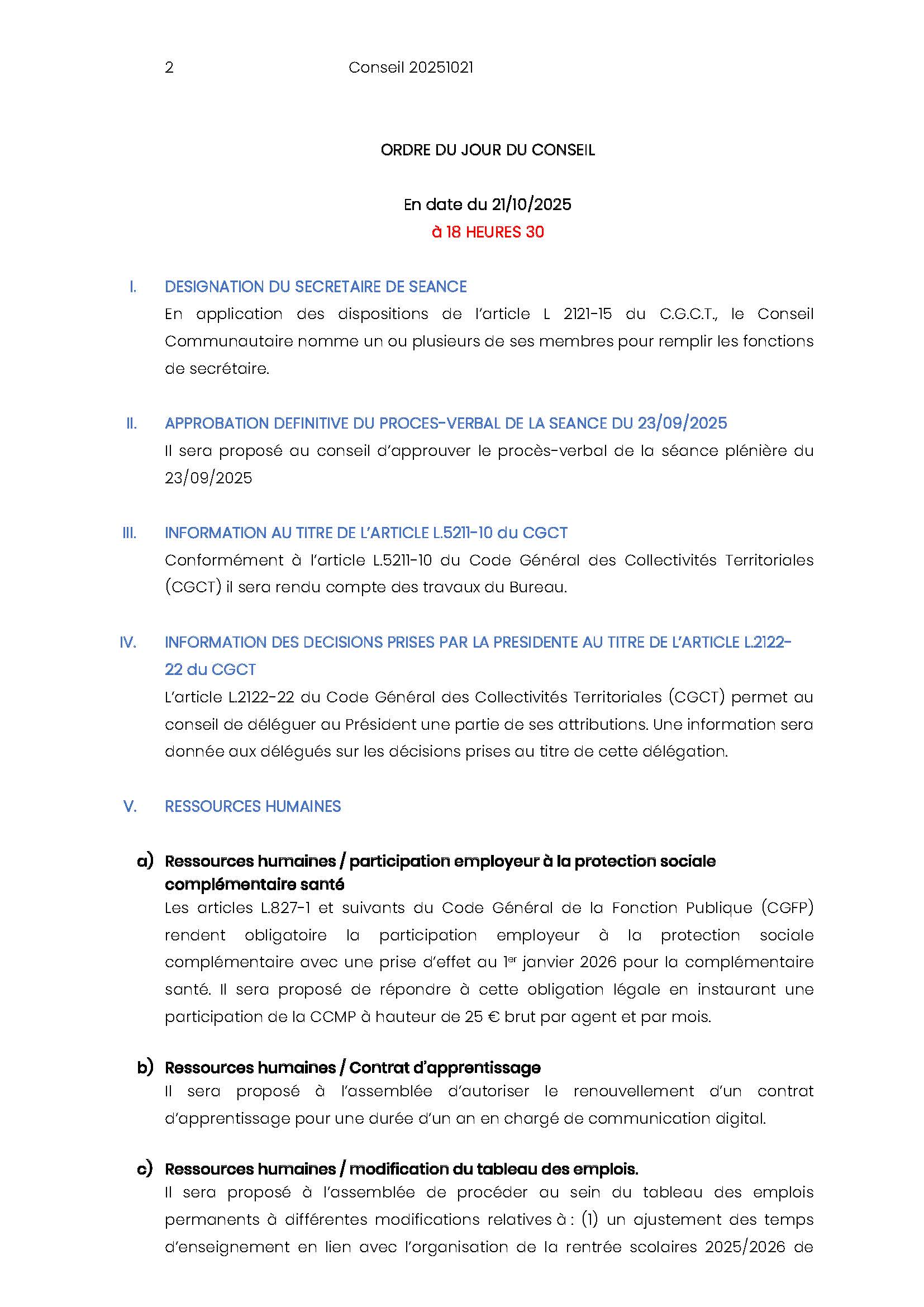 Ordre du jour du Conseil Communautaire :
