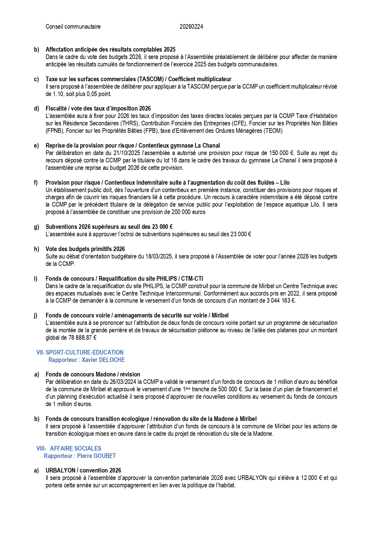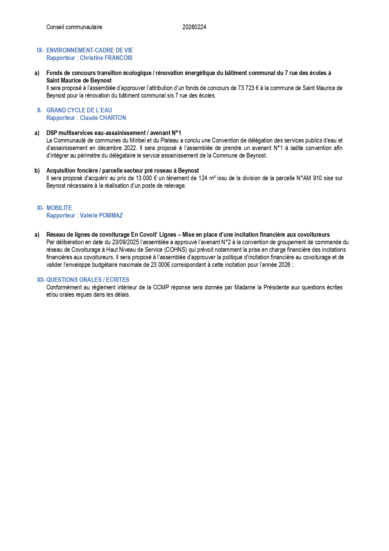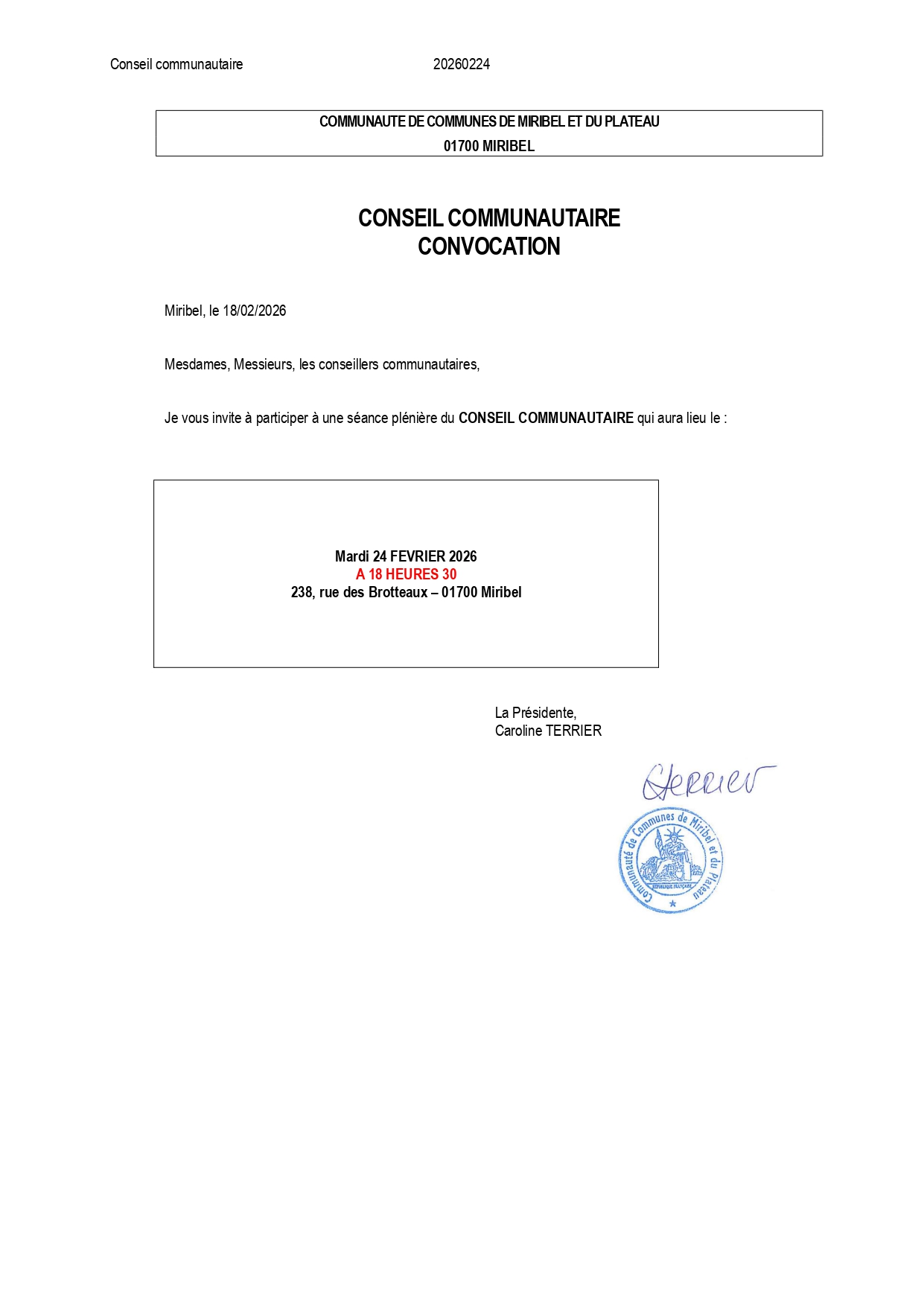 Le Conseil Communautaire de la CCMP se tiendra le mardi 24 février 2026 à 18h30, au siège de la CCMP (238 Rue des Brotteaux, 01700 Miribel).