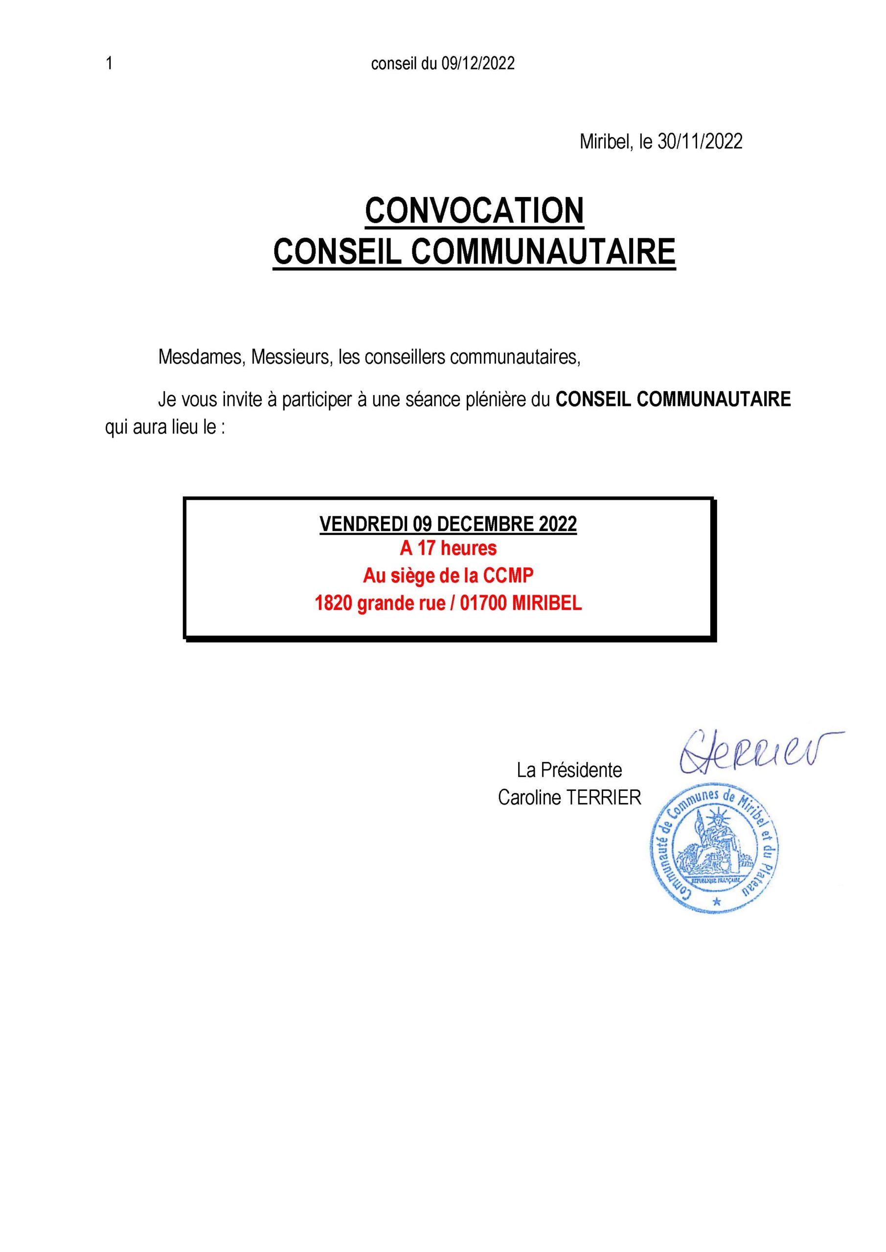 Le Conseil Communautaire de la CCMP se tiendra le vendredi 9 Décembre 2022 à 17h00, au siège de la CCMP