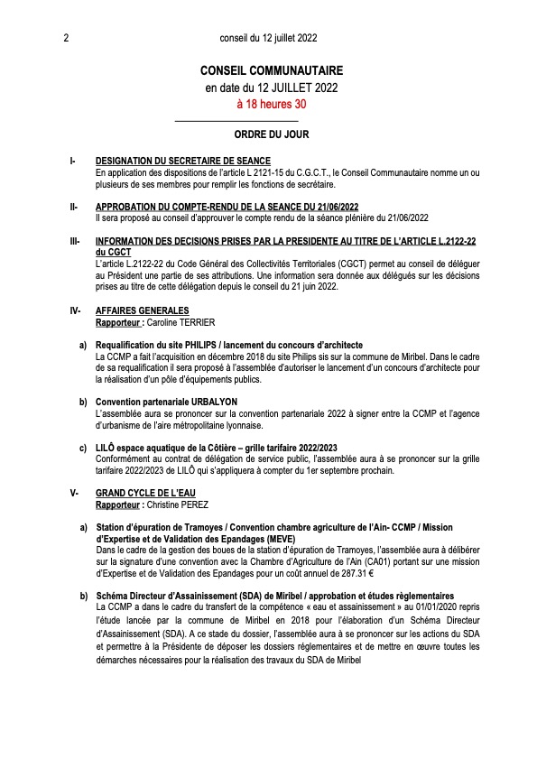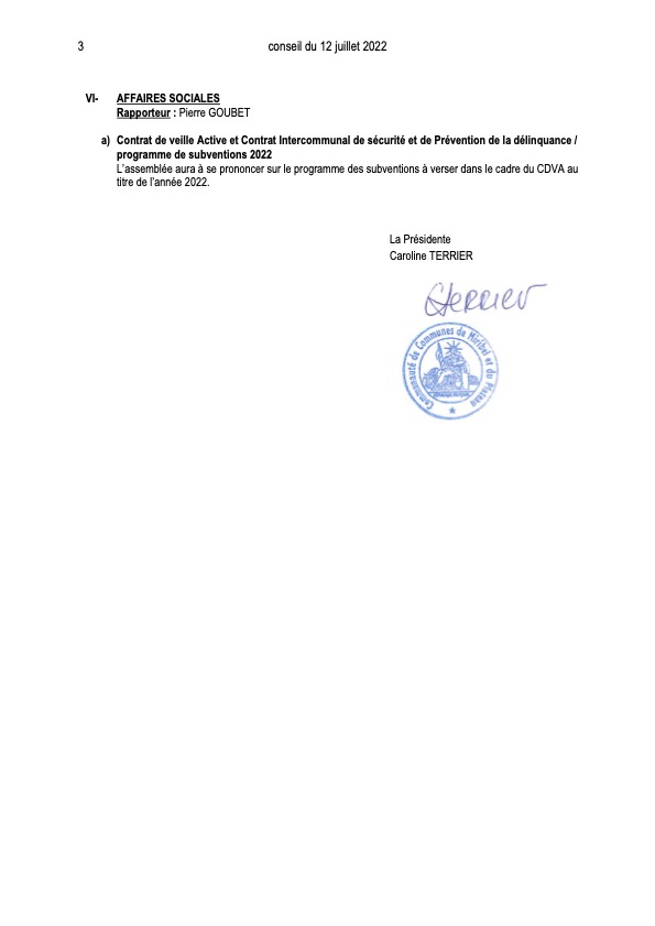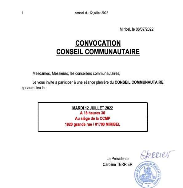 Convocation Conseil Communautaire le 12 juillet 2022