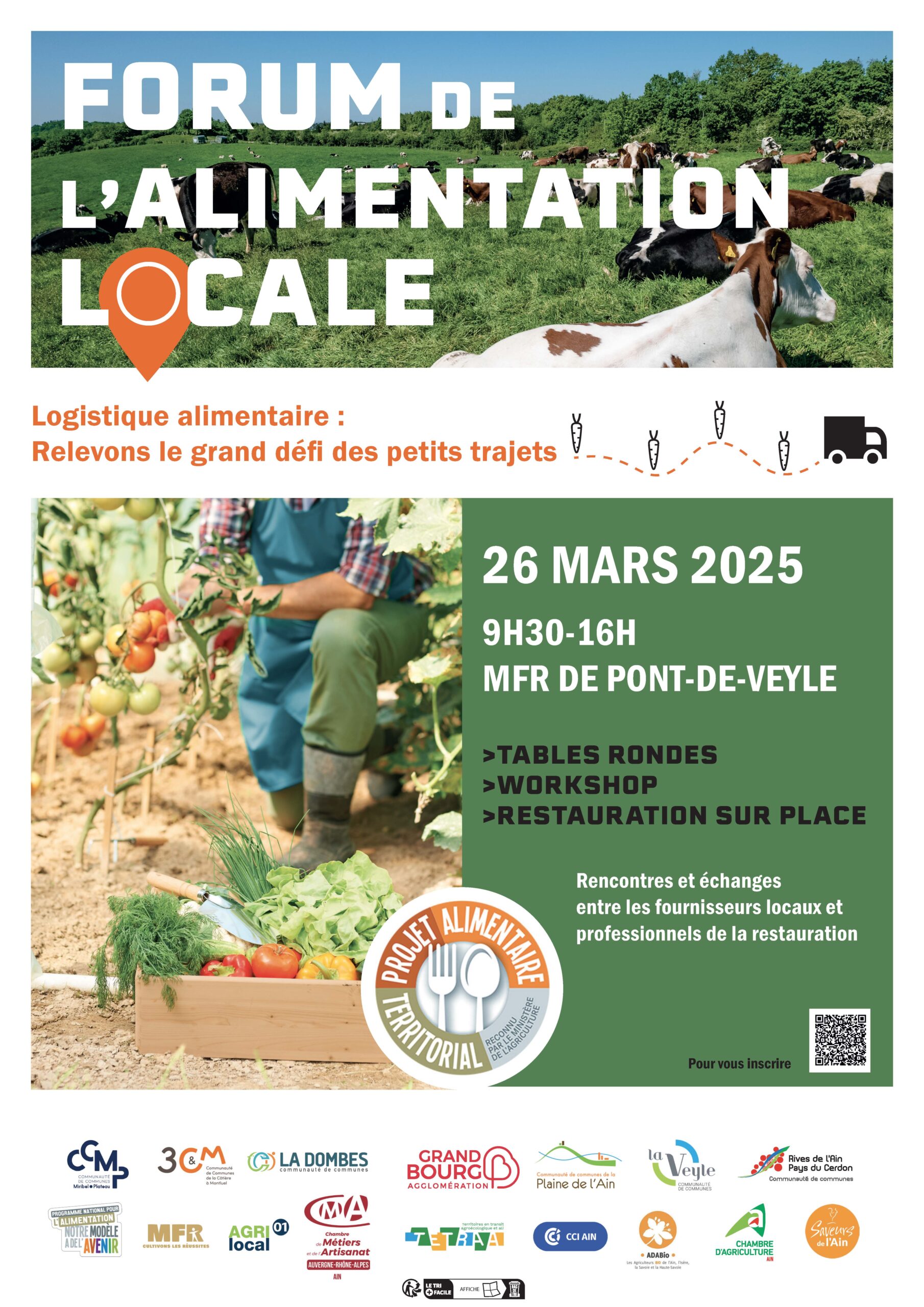 Le mercredi 26 mars 2025, venez assister au forum de l'alimentation locale, à la MFR de Pont-de-Veyle de 9h30 à 16h.
