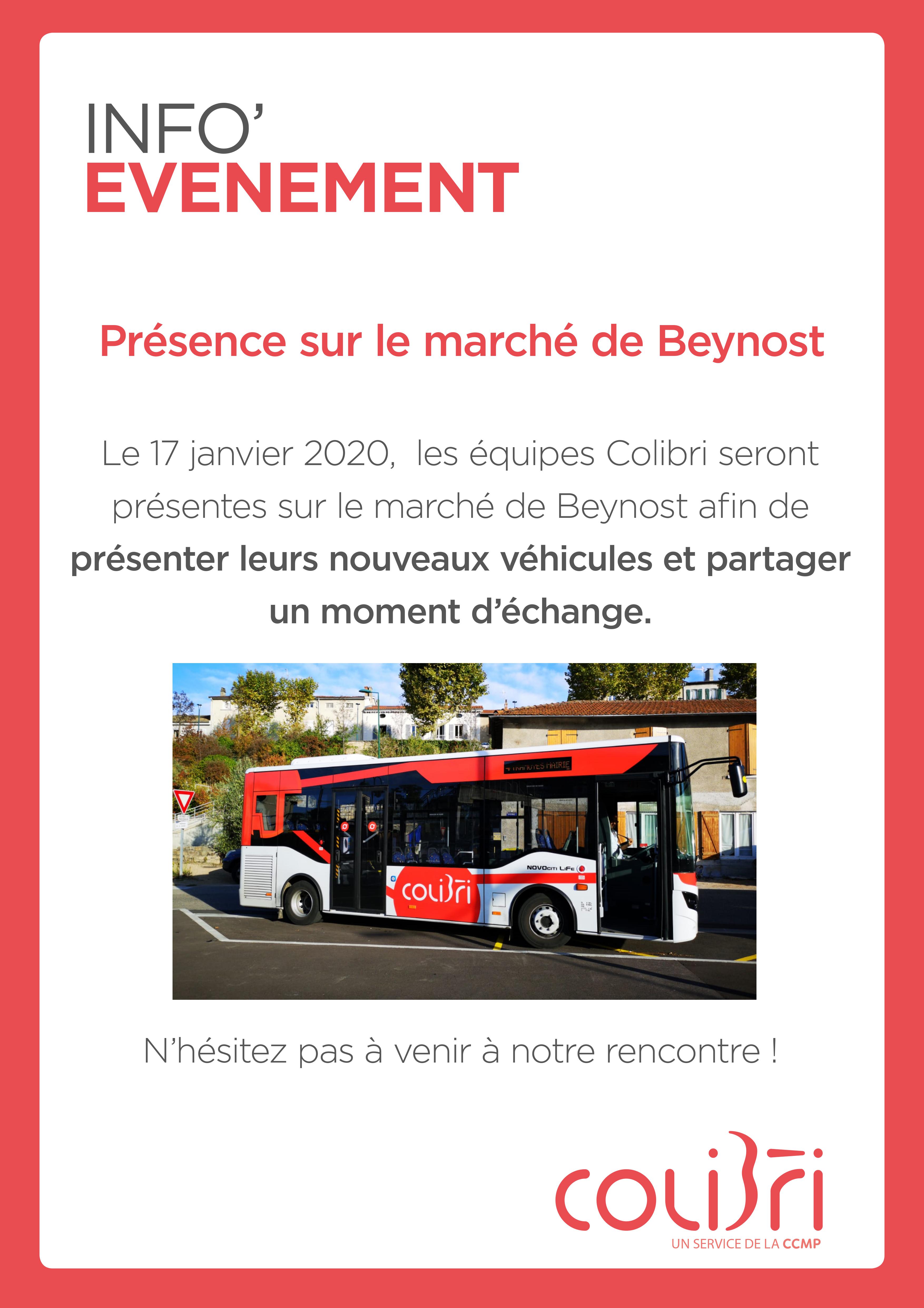 Le vendredi 17 janvier, de 16h à 20h rendez-vous sur le marché de producteurs de Beynost, aux complexe du Mas du Roux, pour découvrir les nouveaux bus Colibri !