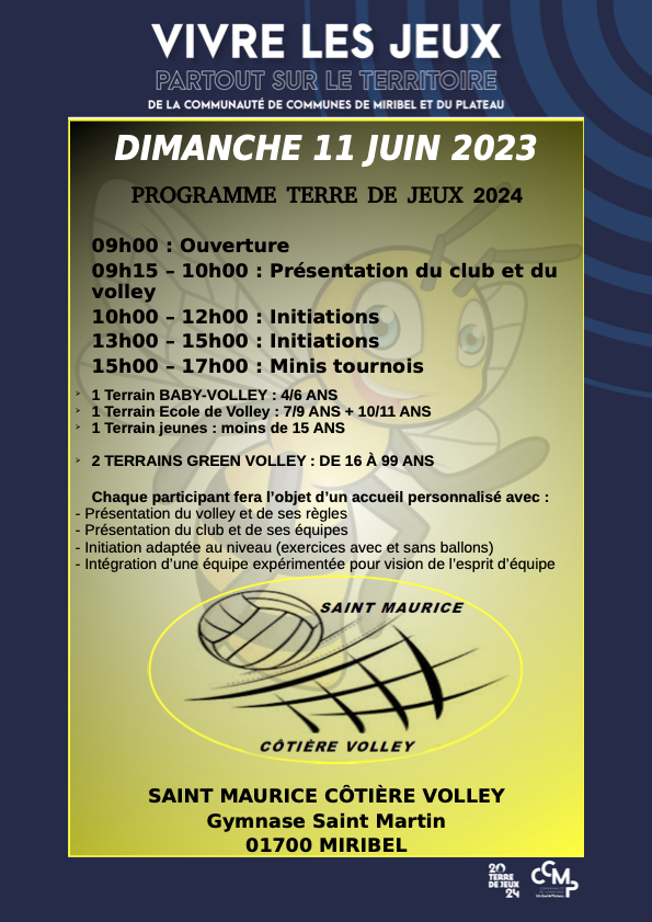 Dimanche 11 juin de 9h à 15h venez découvrir le volley avec Saint Maurice Côtière Volley au Gymnase Saint-Martin !