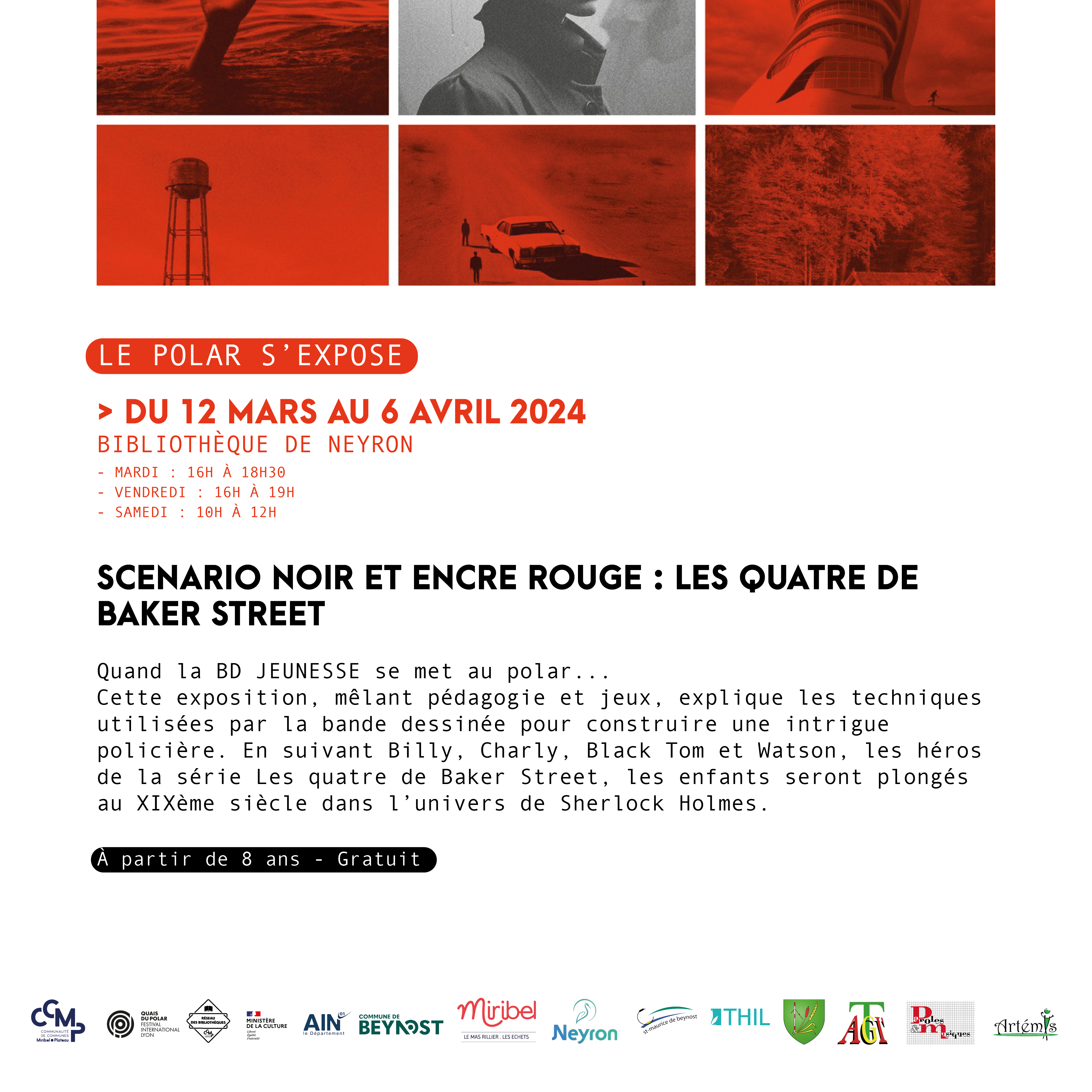 Cette exposition, mêlant pédagogie et jeux, explique les techniques utilisées par la bande dessinée pour construire une intrigue policière. En suivant Billy, Charly, Black Tom et Watson, les héros de la série Les quatre de Baker Street, les enfants seront plongés au XIXème siècle dans l’univers de Sherlock Holmes.