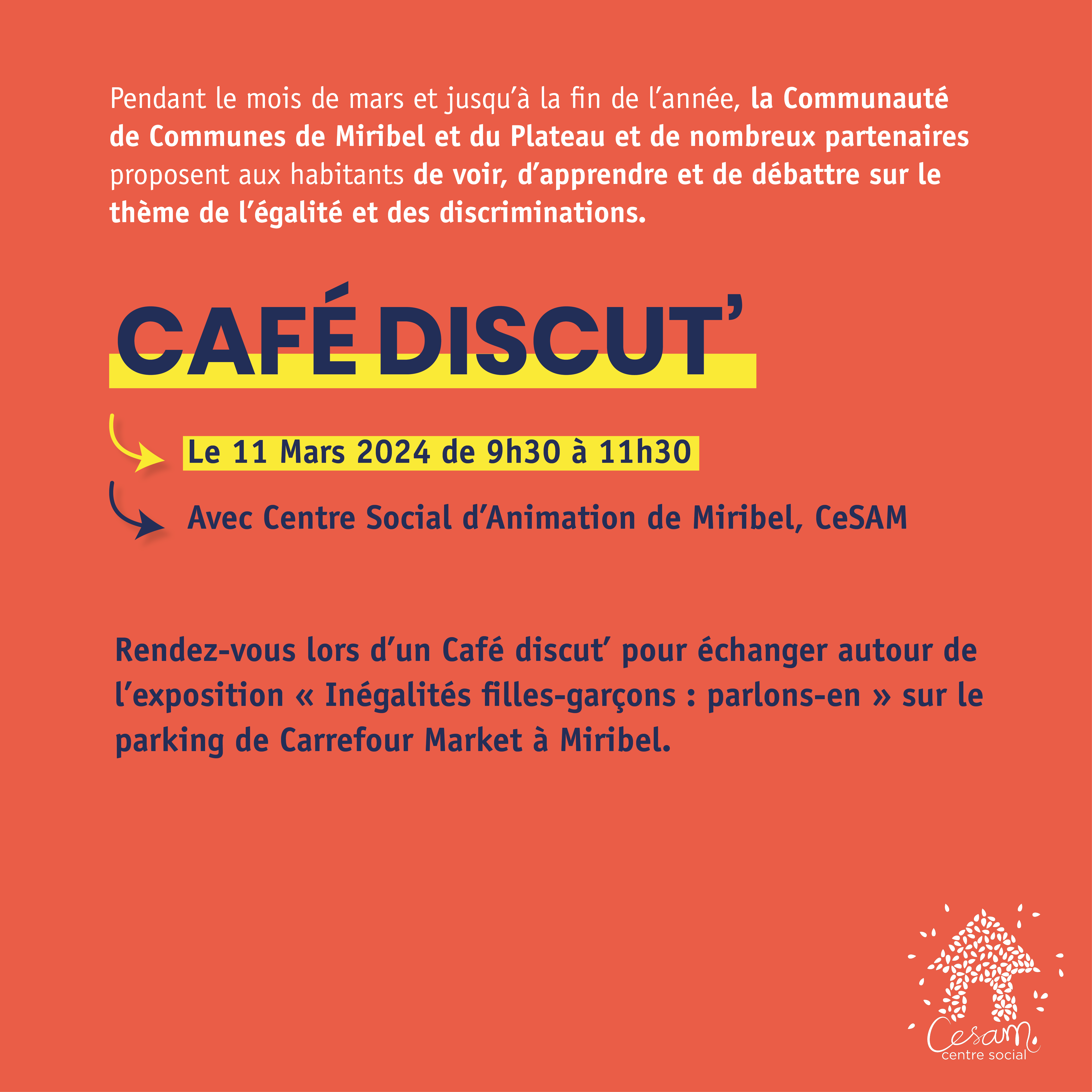Lundi 11 mars de 9h30 à 11h30, avec le Centre Social d’Animation de Miribel, CeSAM