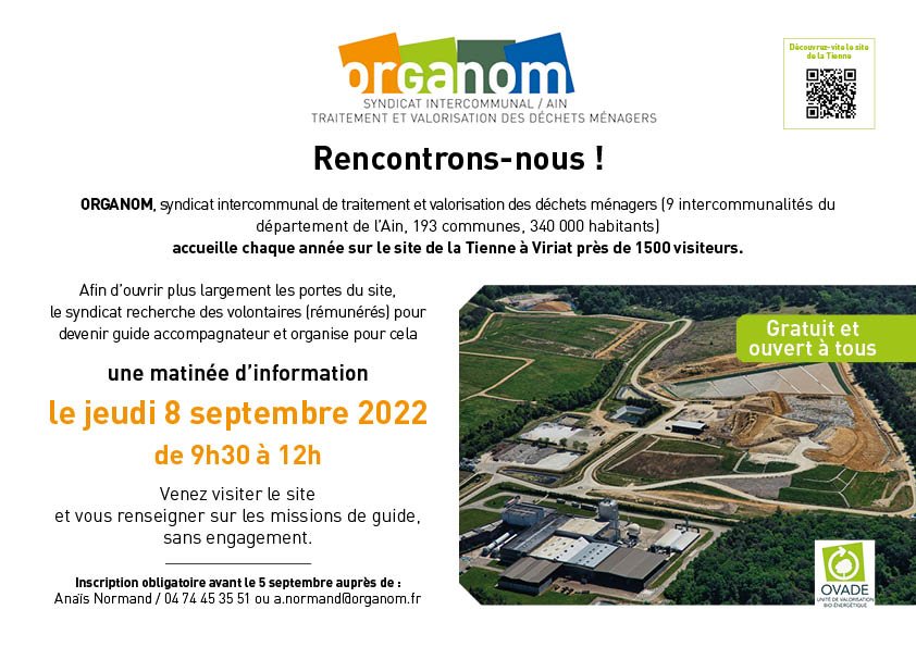 Organom, syndicat mixte de traitement et de valorisation des déchets ménagers, accueille chaque année sur le site de la Tienne près de 1500 visiteurs.