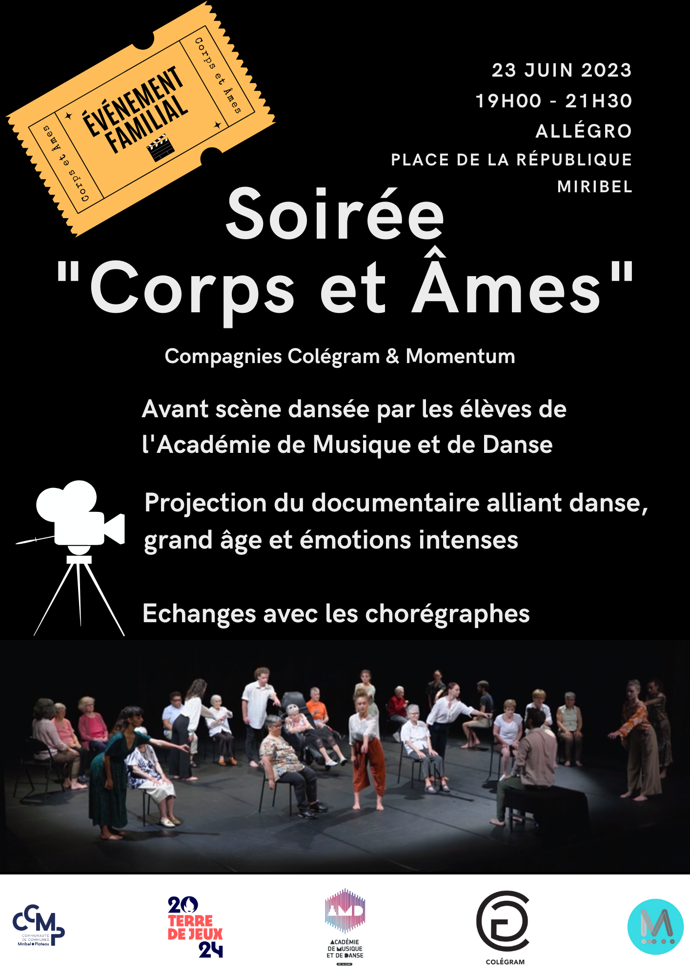 Rendez-vous vendredi 23 juin à 19h 2023 à l’Allegro, Place de la République à Miribel pour la soirée « Corps et Âmes » par la Compagnie Colégram et Momentum.