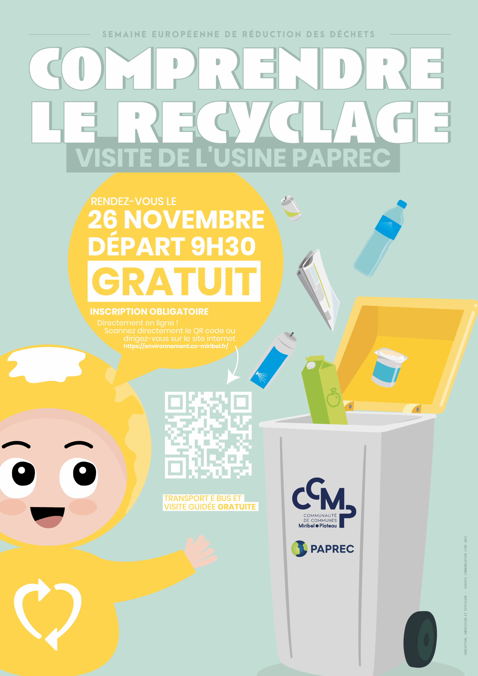 Mercredi 26 novembre 2025, dans le cadre de la Semaine Européenne de Réduction des Déchets (SERD), organisée du 22 au 30 novembre 2025, la Communauté de communes vous invite à découvrir les coulisses du recyclage lors d’une visite exceptionnelle de l’usine PAPREC Trivalo 69.