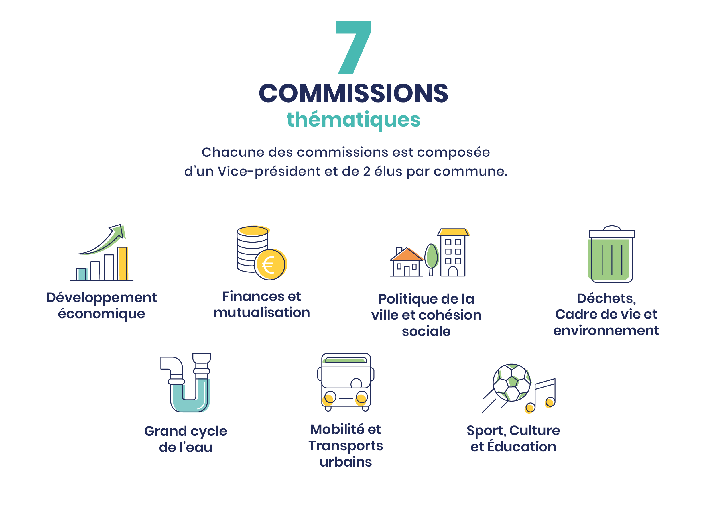 Avant d’être soumis au vote du Conseil communautaire, tout projet, toute dépense doivent être étudiés par les conseillers répartis en 7 commissions permanentes.