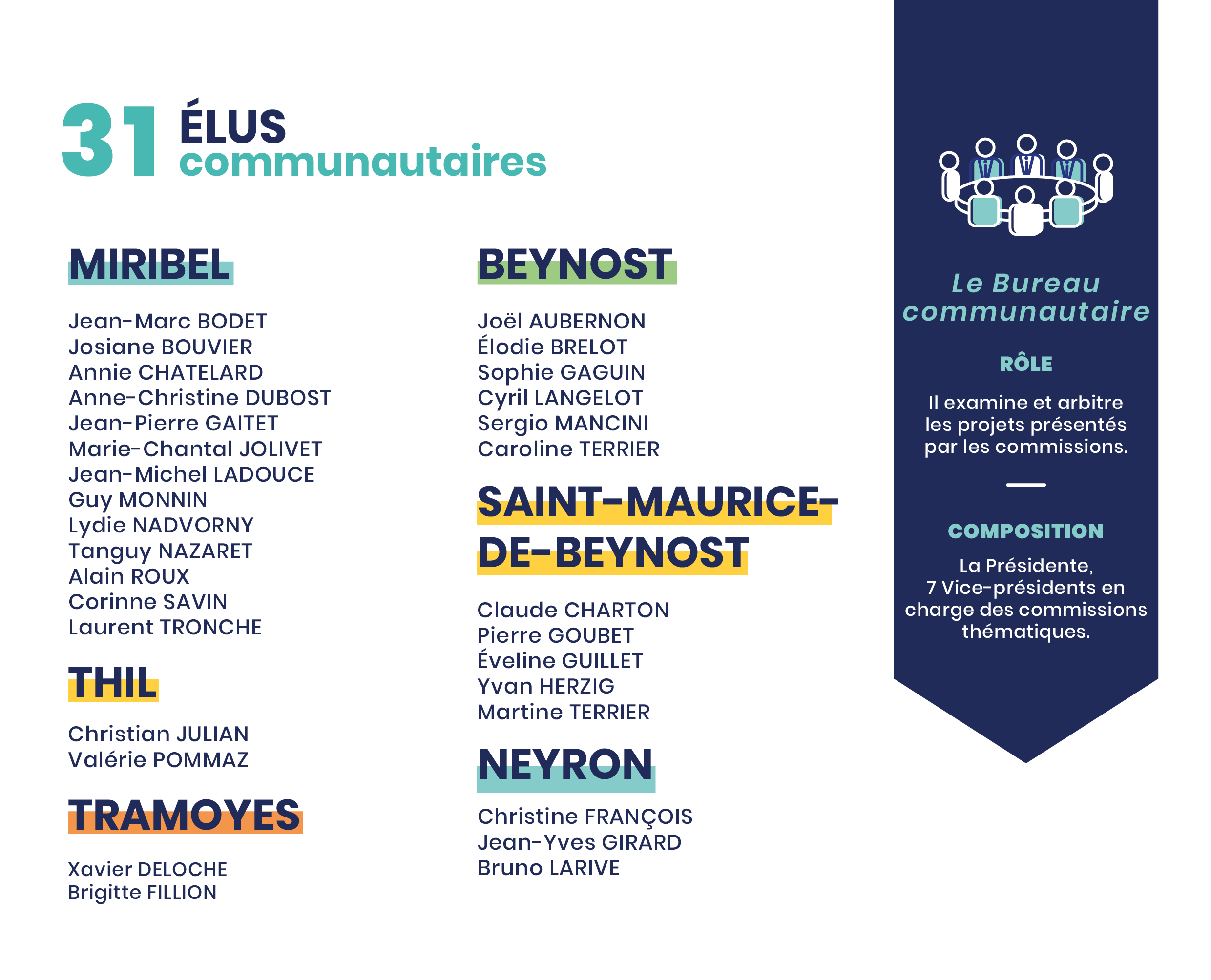 Le Conseil communautaire de la CCMP est composé de 31 conseillers selon la répartition suivante :