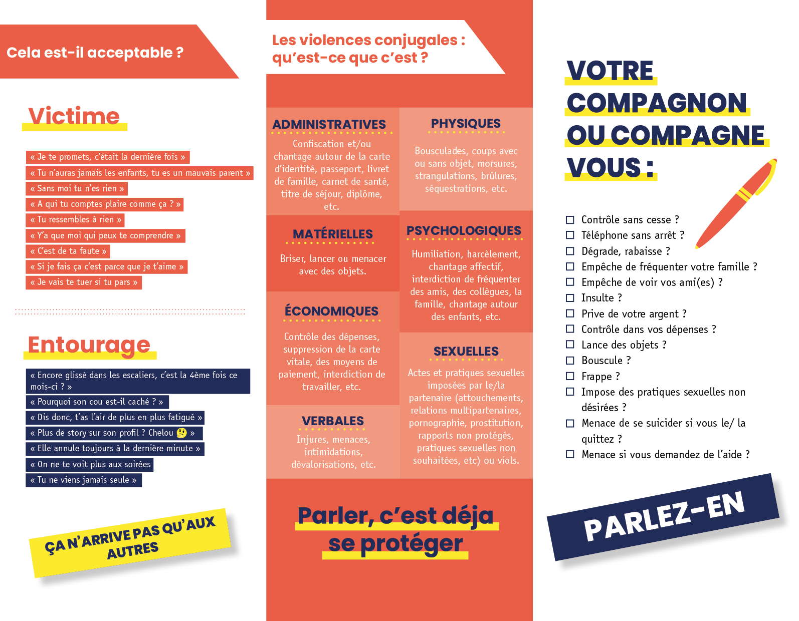 Que vous soyez mariée, pacsée, en concubinage, séparée… La loi interdit et condamne les violences au sein du couple et protège toute personne vivant en France, quelle que soit sa nationalité. De nombreuses structures viennent en aide aux victimes de violences conjugales sur le territoire de la CCMP.
